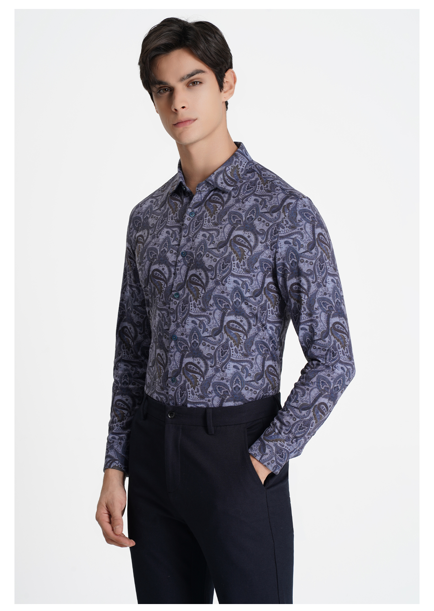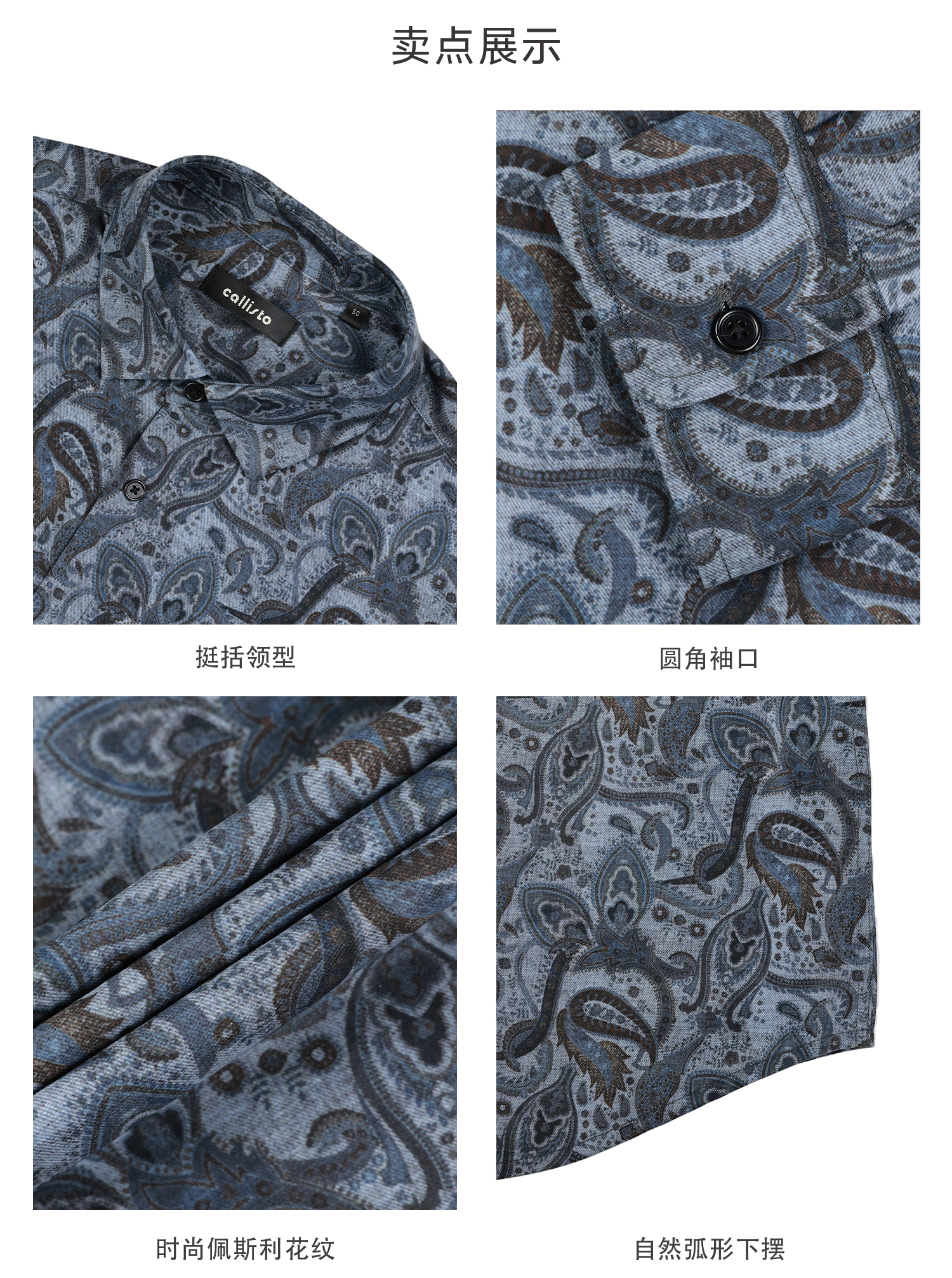 callisto蓝色全棉长袖衬衫 STSTL033C
