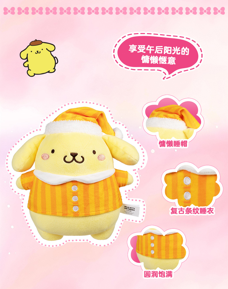 Jazwares 8英寸Pompompurin萌趣毛绒玩偶(条纹睡衣)