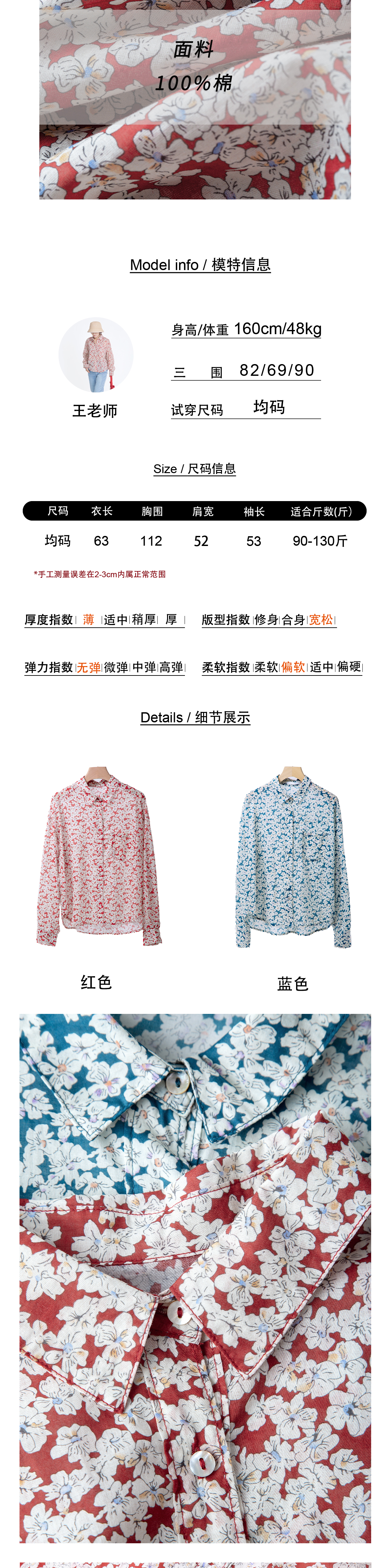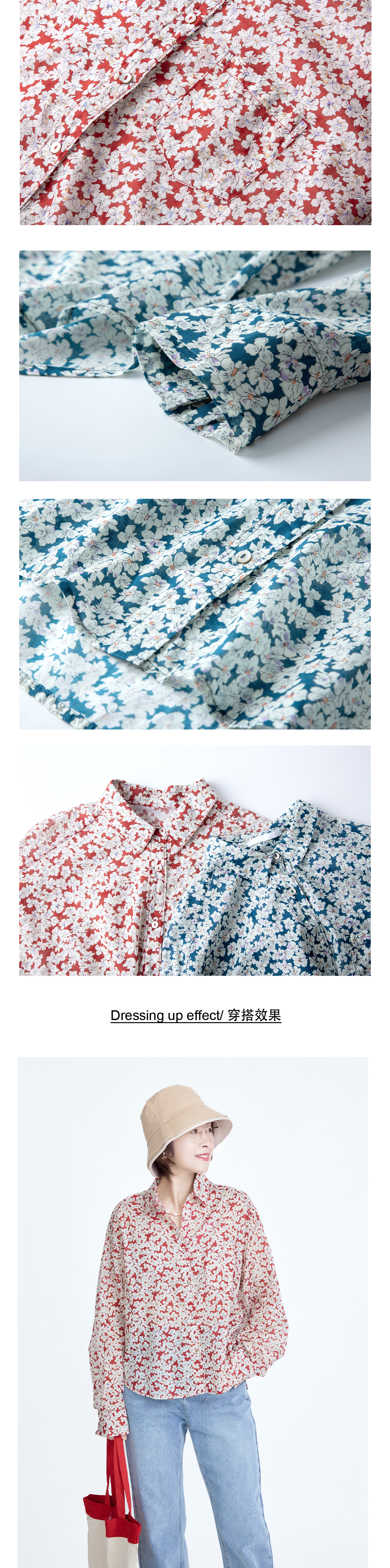 碎花纯棉长袖衬衫