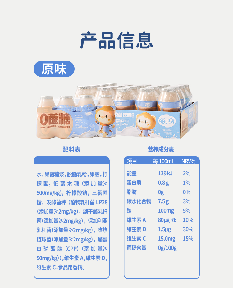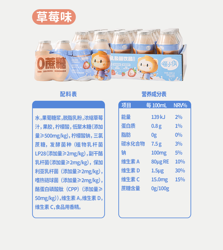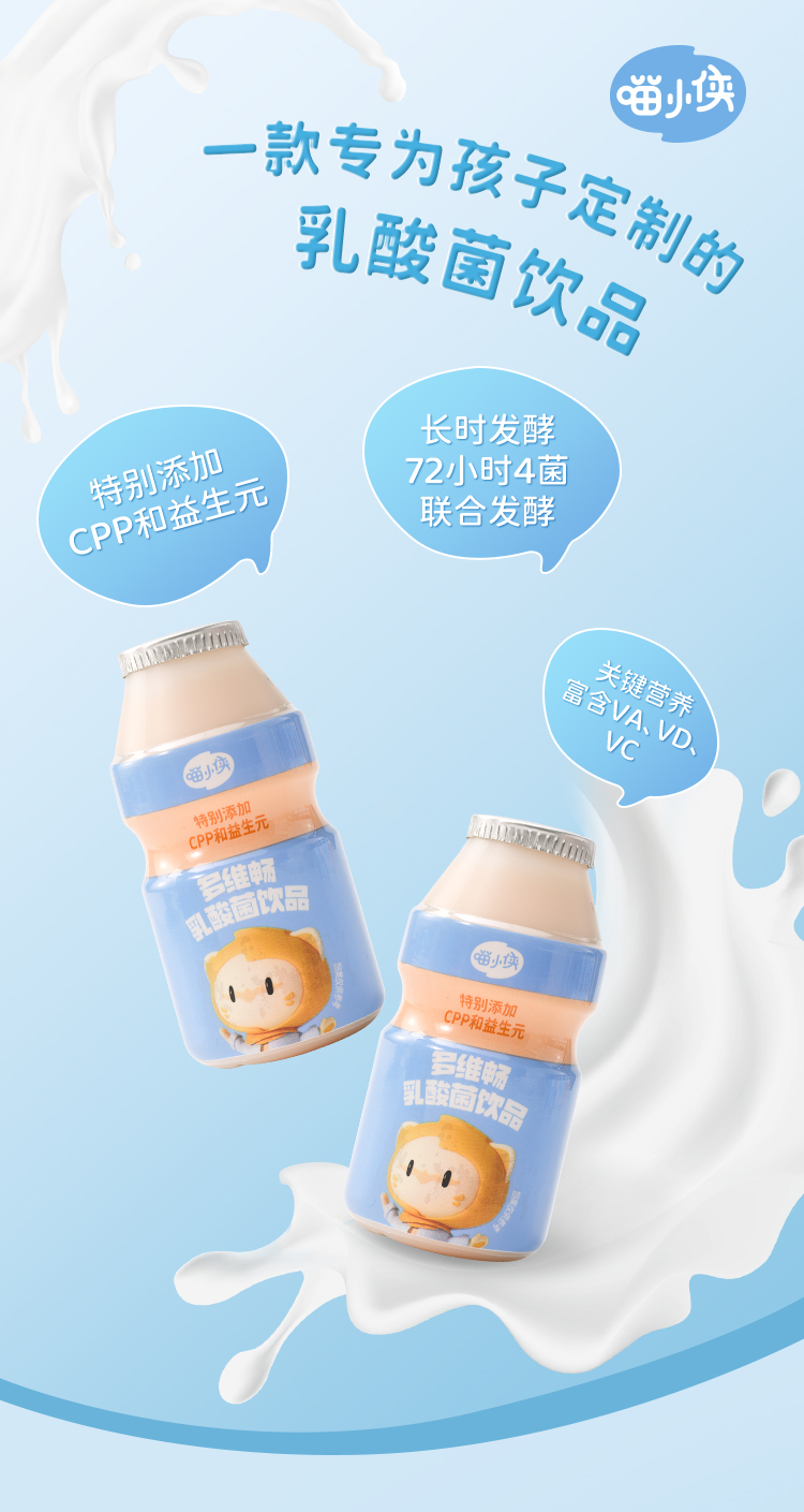 喵小侠_多维畅乳酸菌饮品原味/草莓味/100mL×20瓶