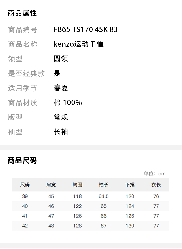 KENZO 高田贤三 箭头标识 男士圆领长袖T恤 灰色 FB65 TS170 4SK 83