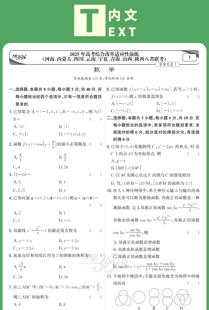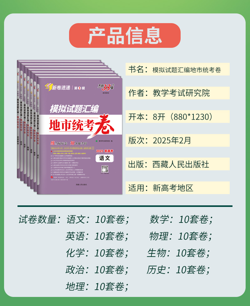 天利38套 2025模拟试题汇编 地市统考卷 语文 数学 英语 物理 化学 生物 政治 历史 地理