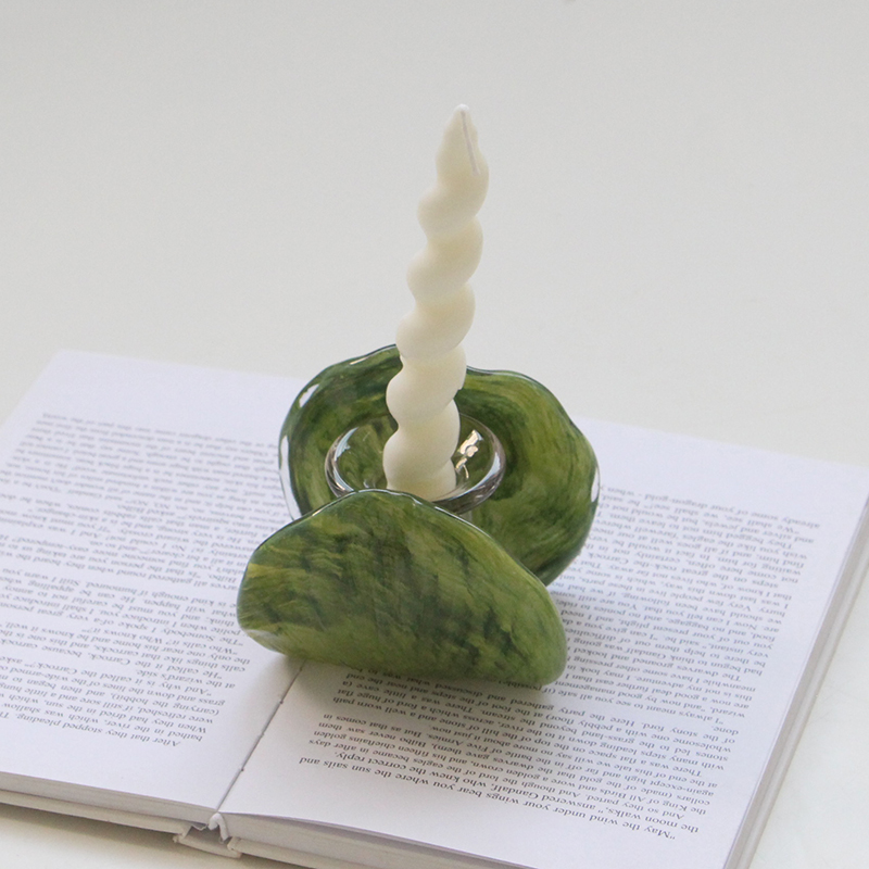 创意花朵河蚌玻璃烛台复中古创意餐桌氛围蜡烛台家居装饰 ins餐厅