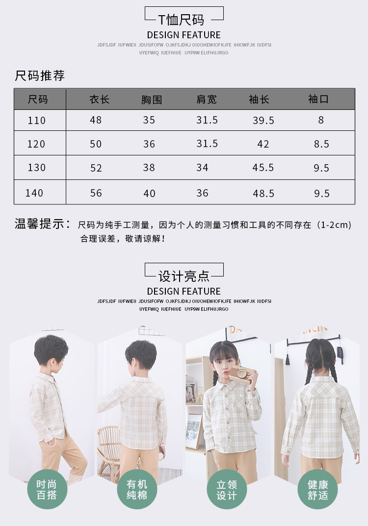 丨有机丨素道彩棉儿童衬衫 男女童潮流格子衬衫 宽松新款时尚衫 纯棉