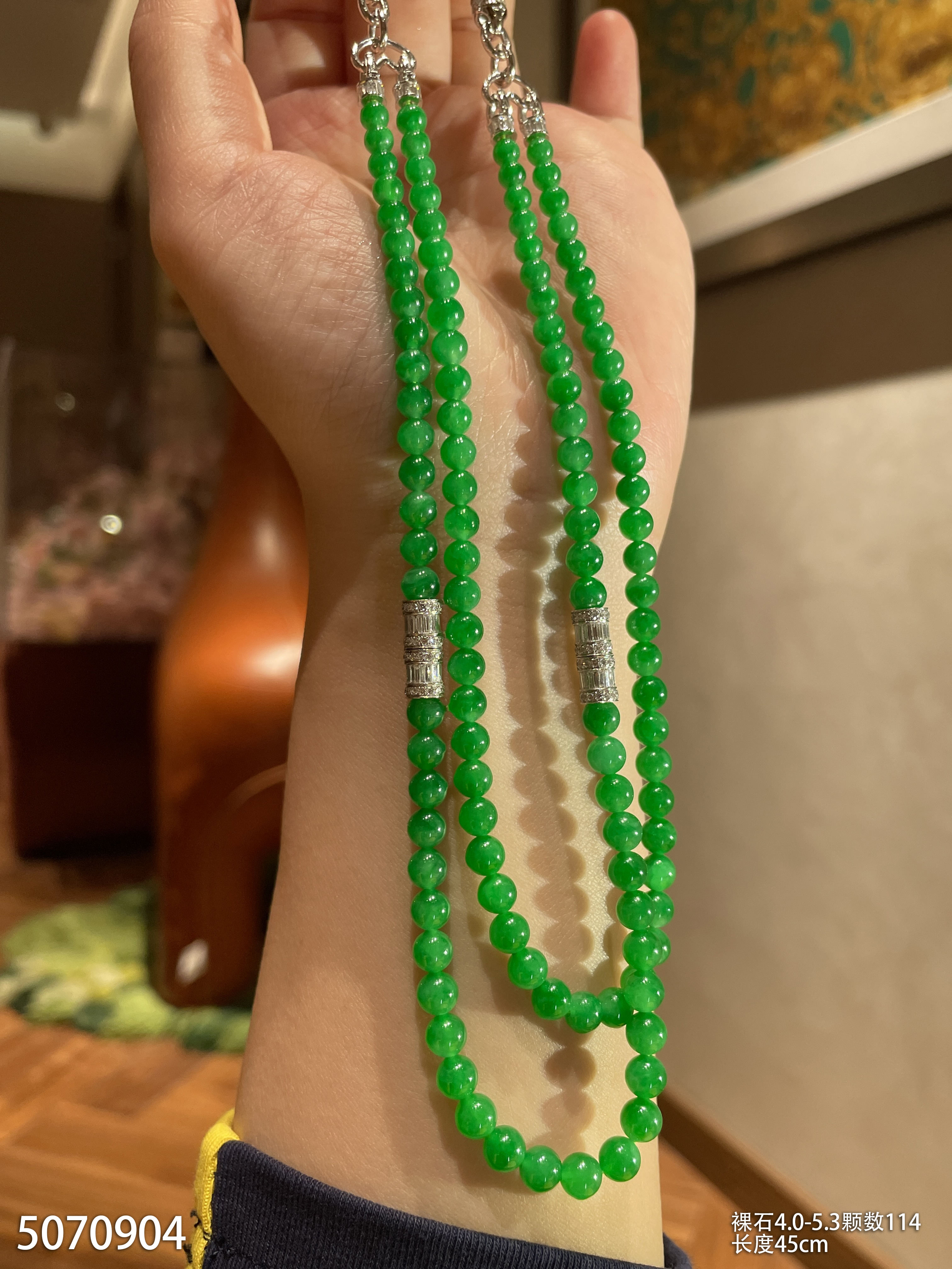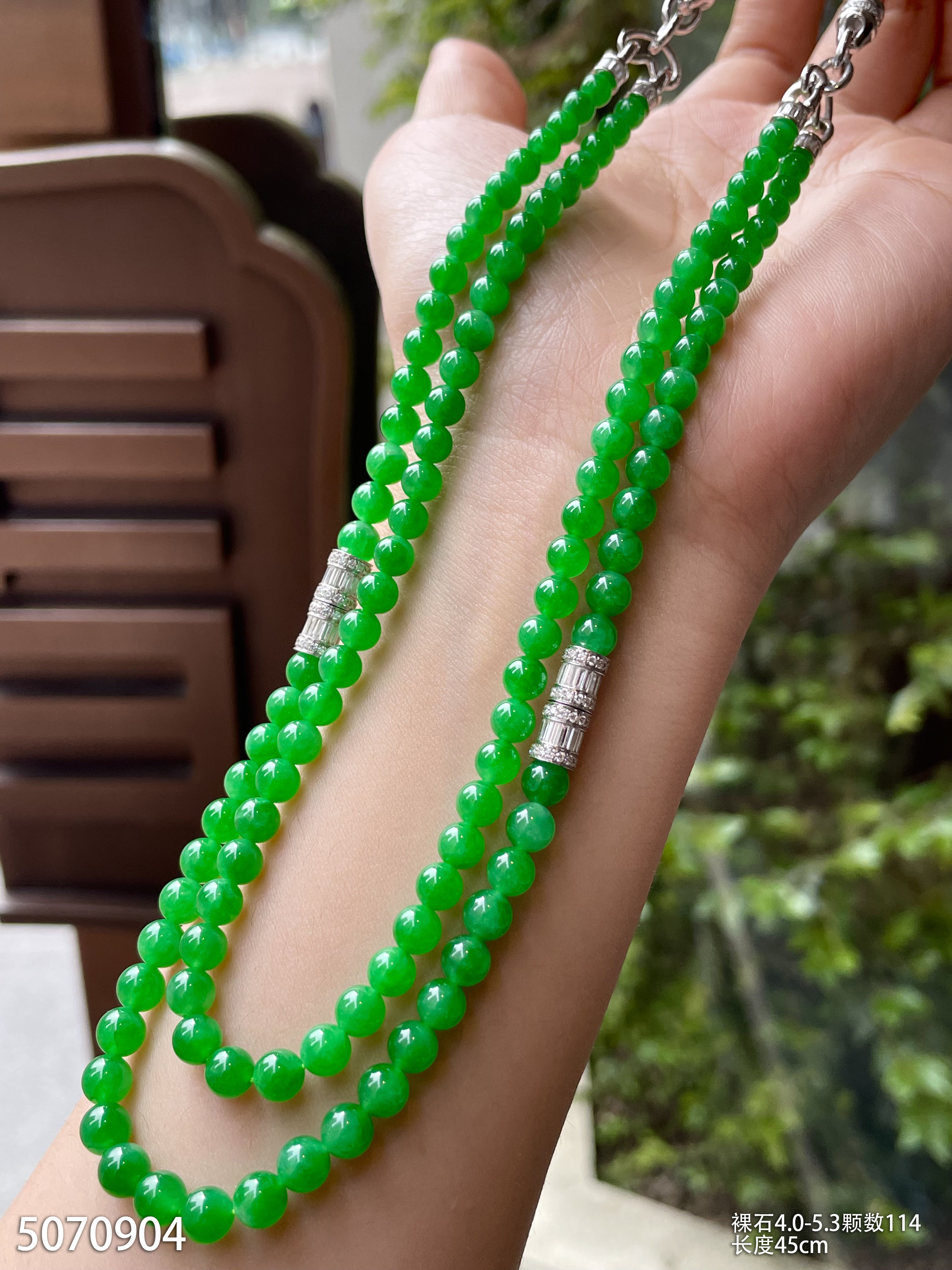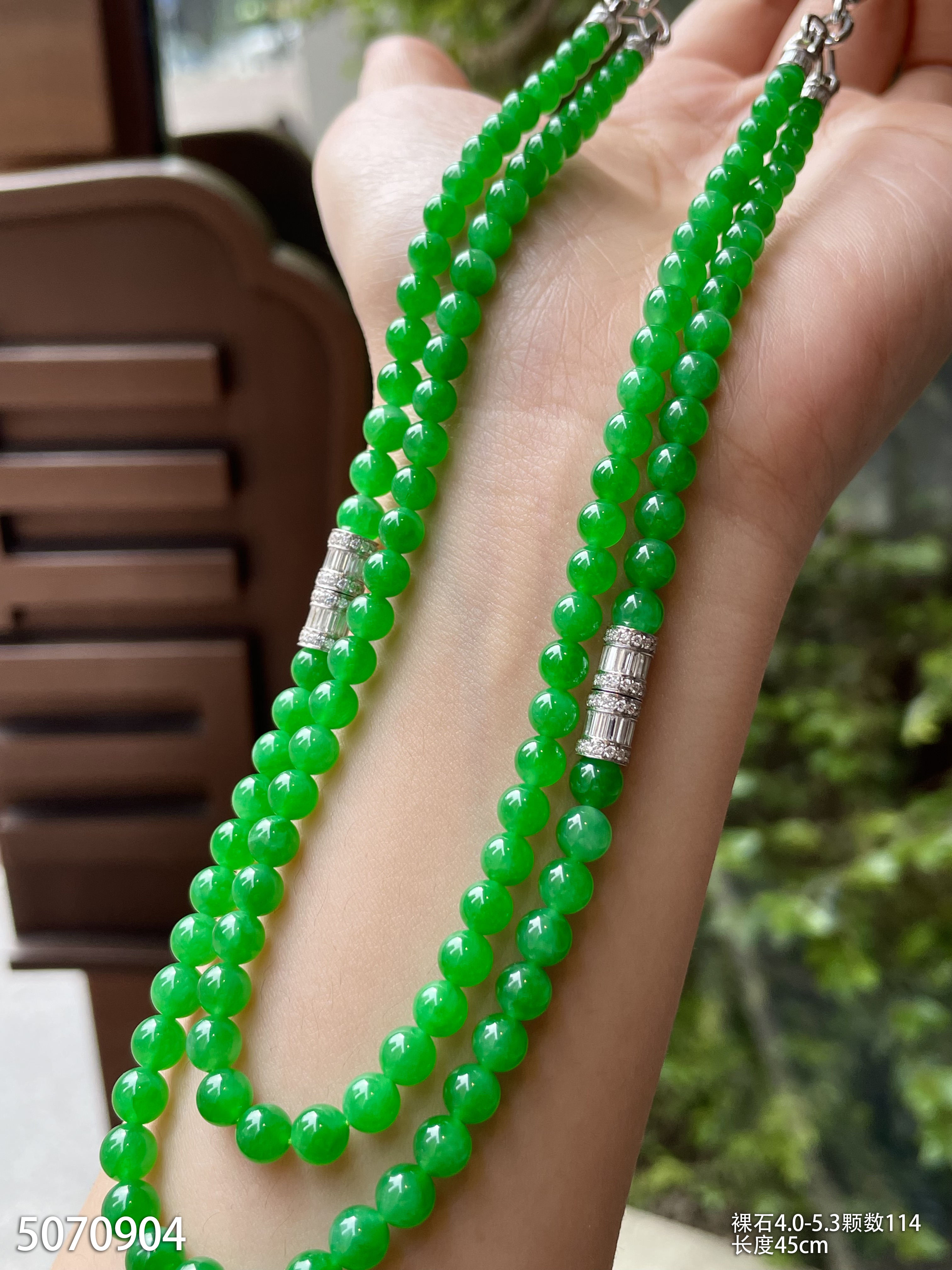 绿珠串 直径6.7-7.9 颗数108 13-1135408。具体价格微信咨询