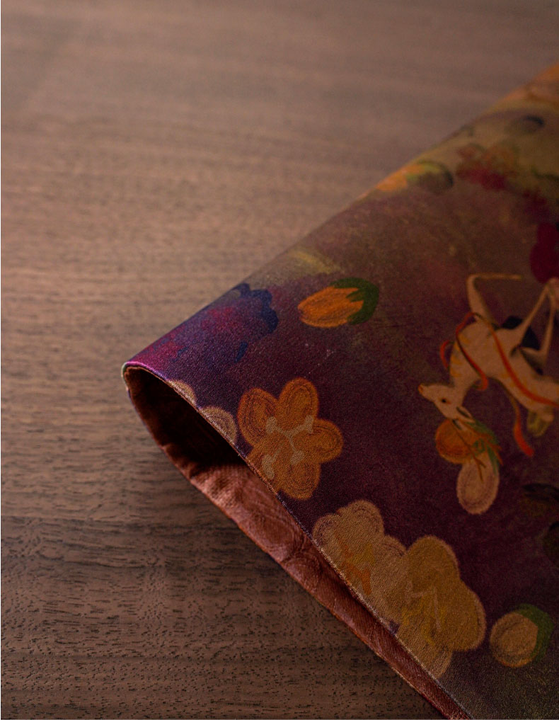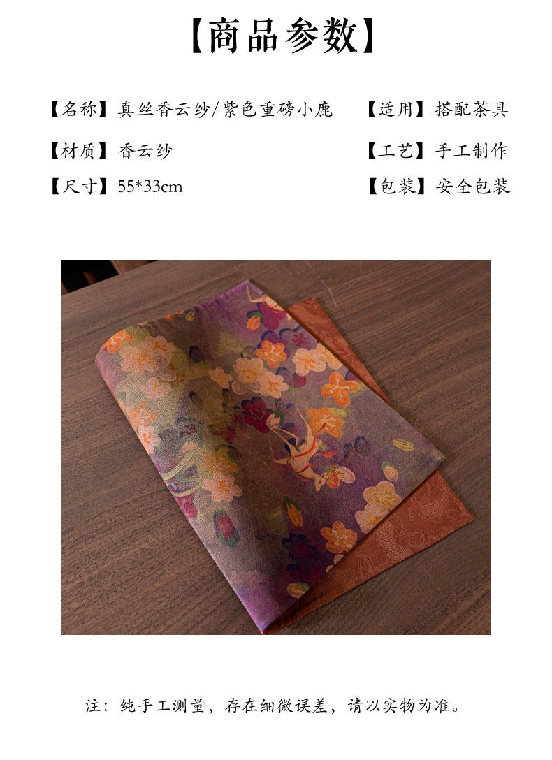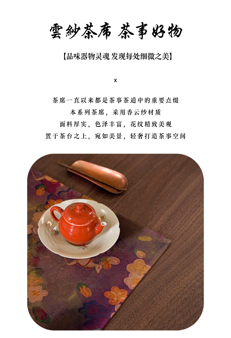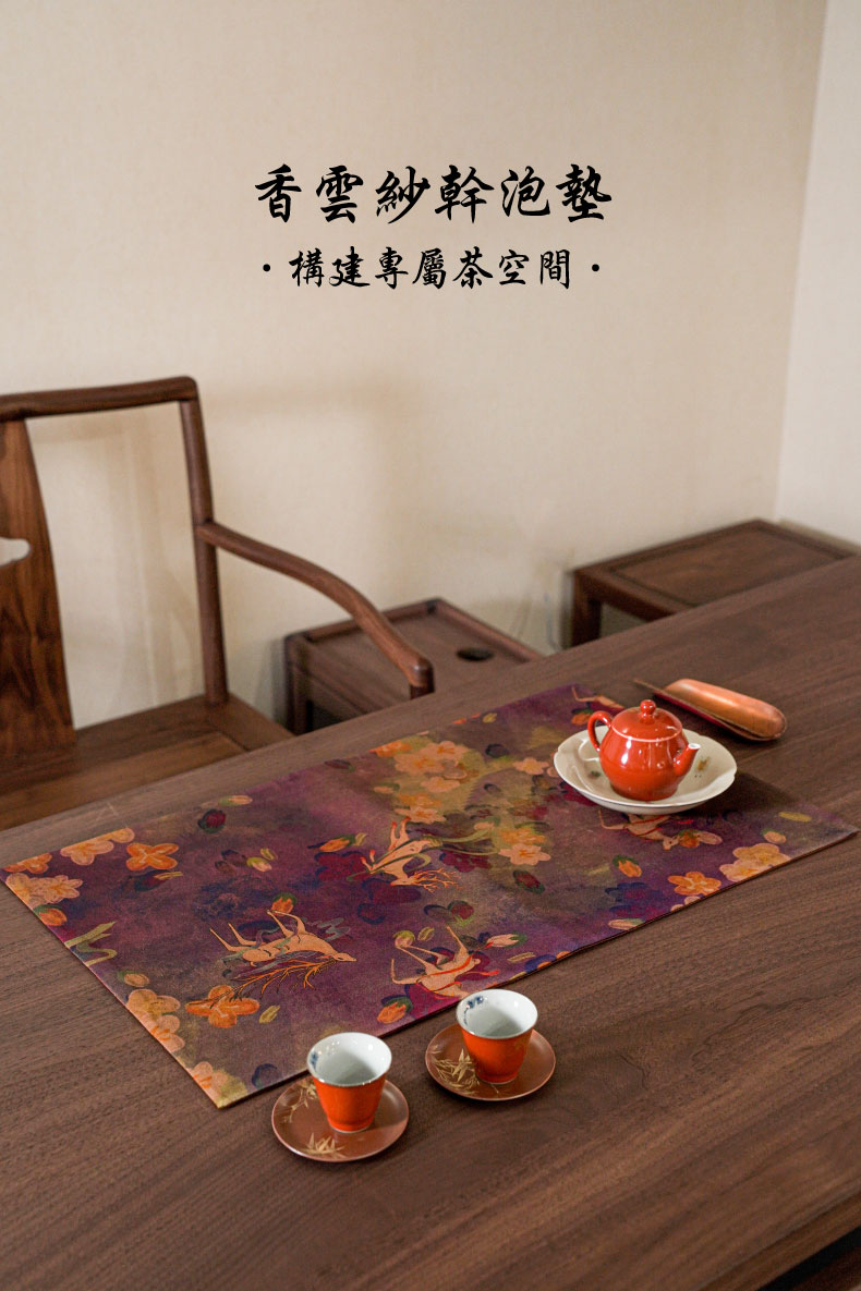 真丝香云纱/紫色重磅小鹿 55*33 单面设计 干泡茶垫家用轻奢桌旗茶道配件