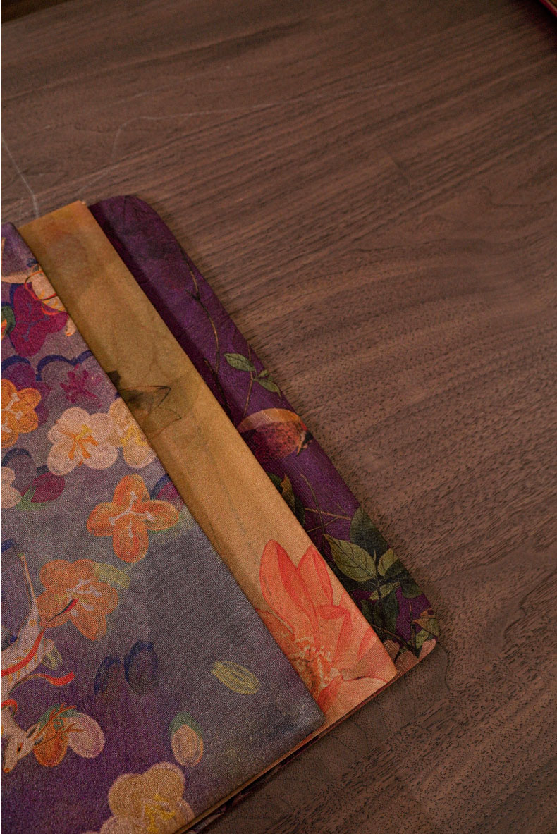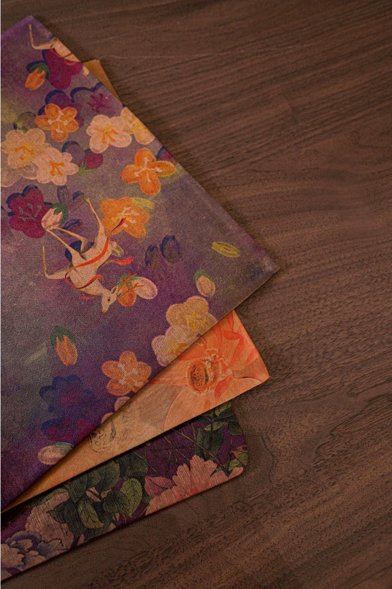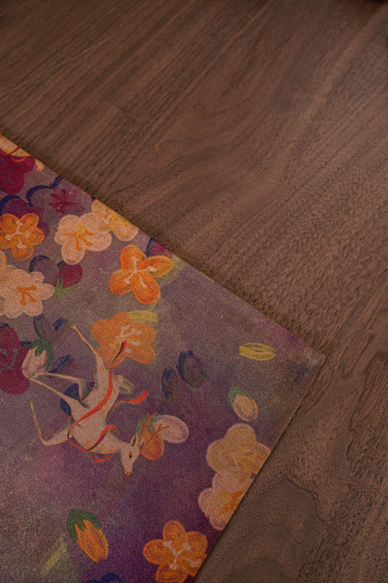 真丝香云纱/紫色重磅小鹿 55*33 单面设计 干泡茶垫家用轻奢桌旗茶道配件