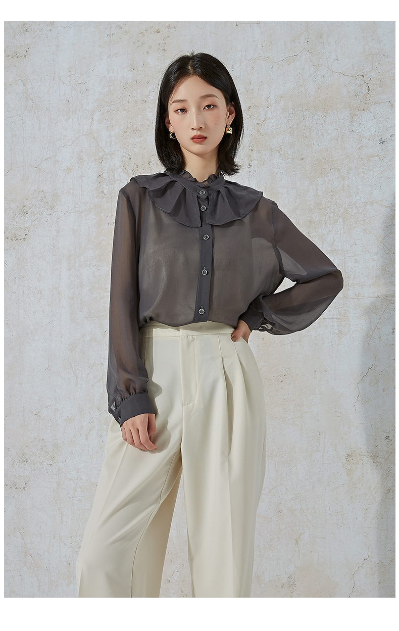 NUTS春秋季设计感时尚休闲简约高级气质通勤长袖衬衫女231013019B