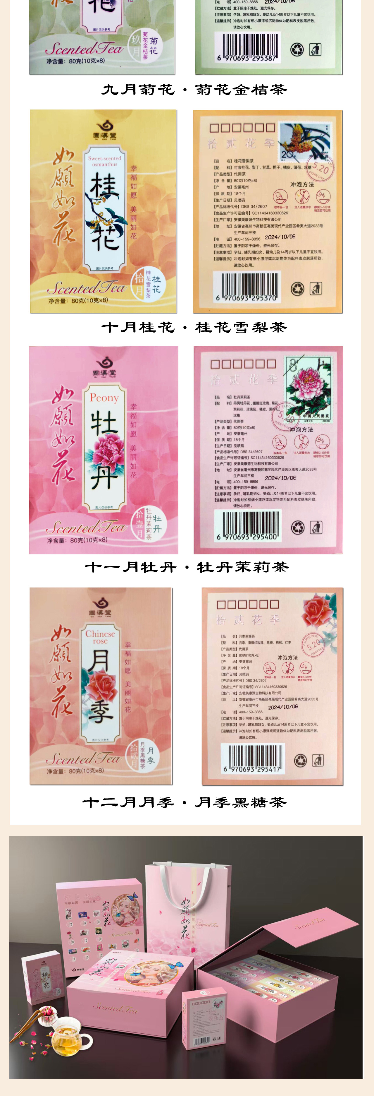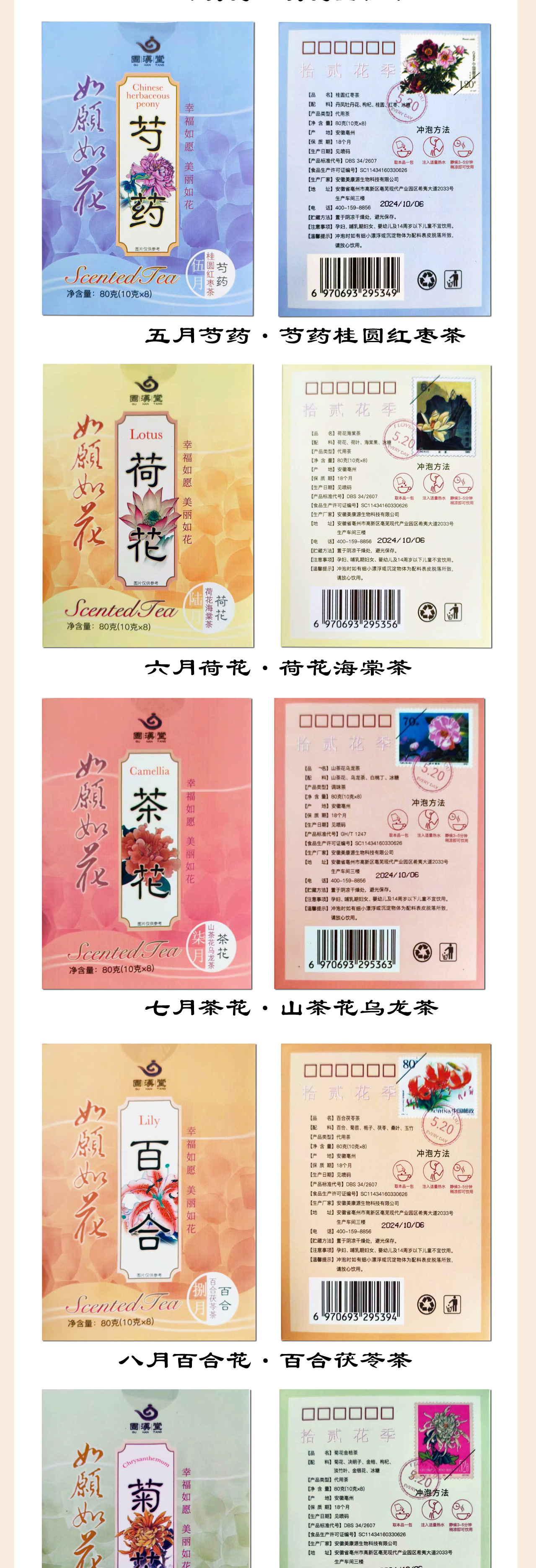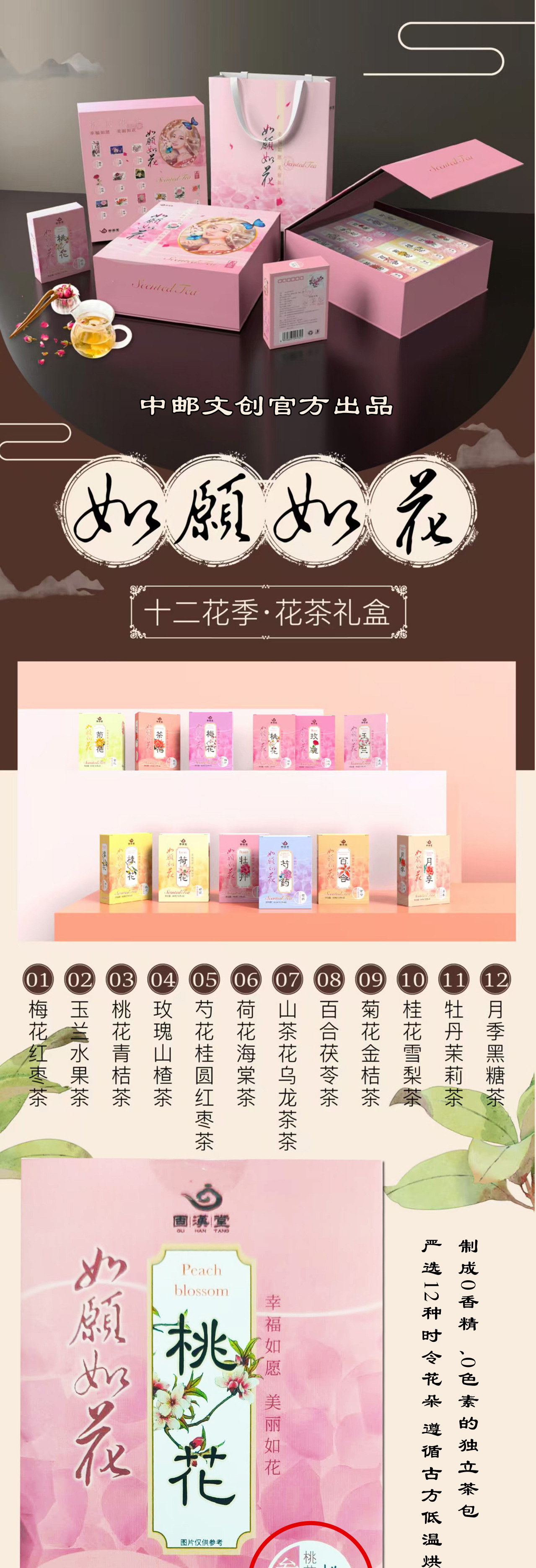 【七夕限定!12盒共96包花季茶】如愿如花·十二花季花茶礼盒 0香精0色素 真花真果低温锁鲜 中邮文创官方出品 每盒附带花卉邮票 国风插画*十二花神故事
