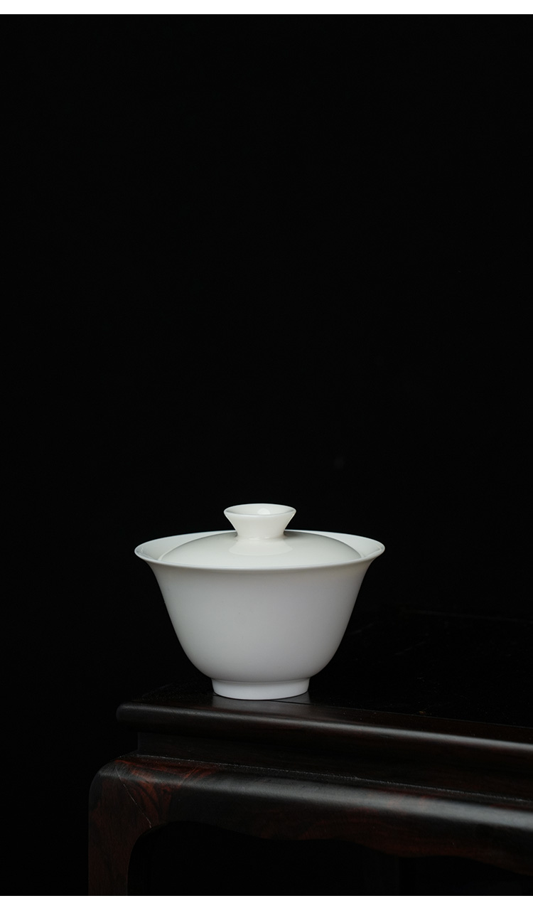 暗香疏影 悬停盖碗白瓷盖碗可悬停泡茶碗陶瓷功夫茶具二才