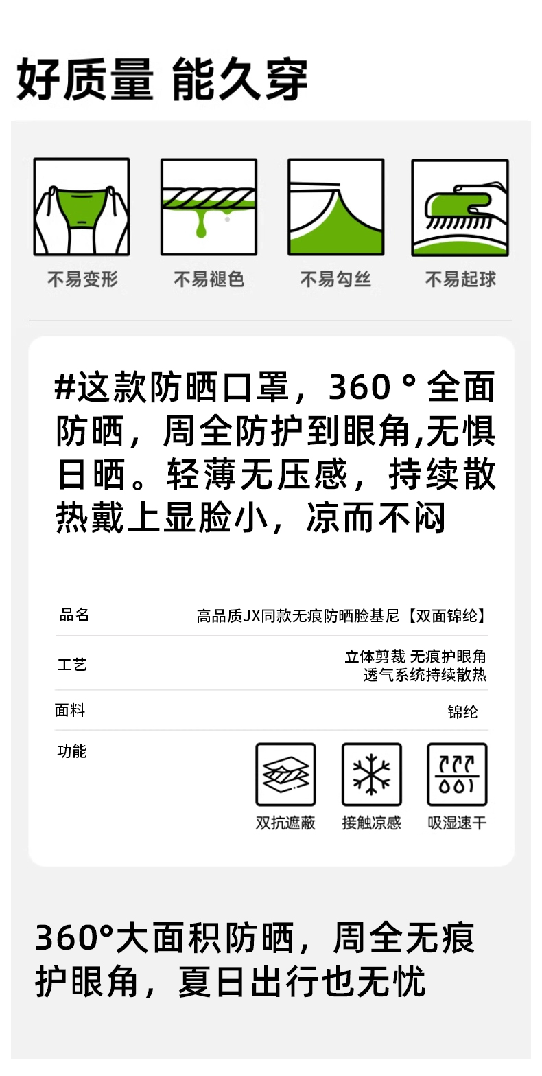 170g双面锦纶冰丝无痕防晒面罩脸基尼可调节1923【蕉下同款】
