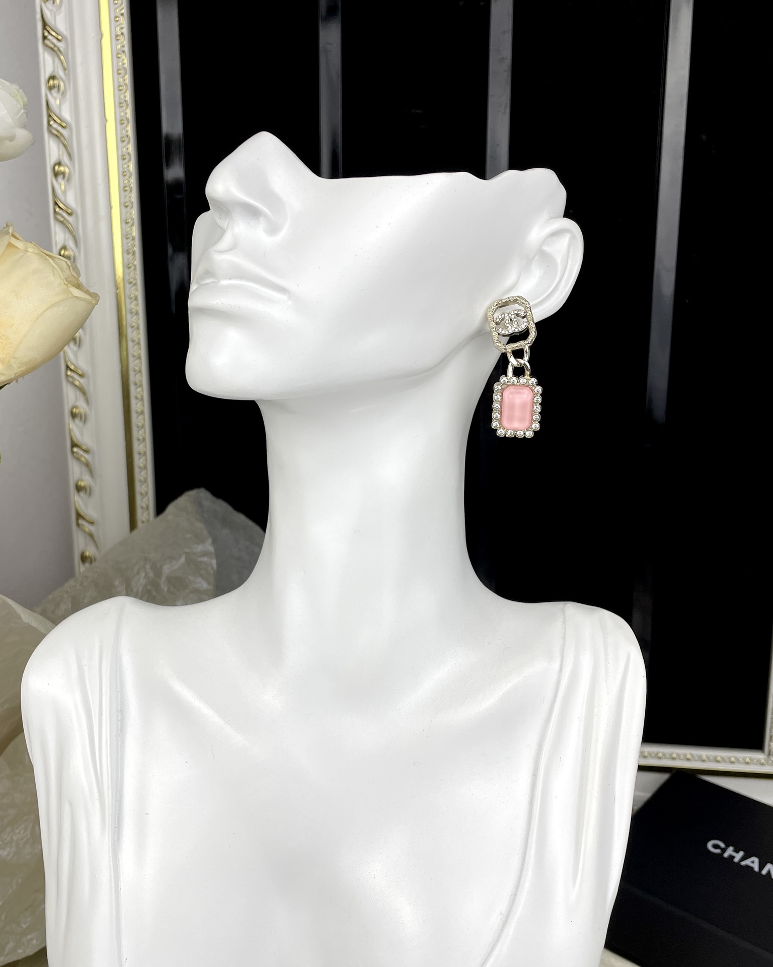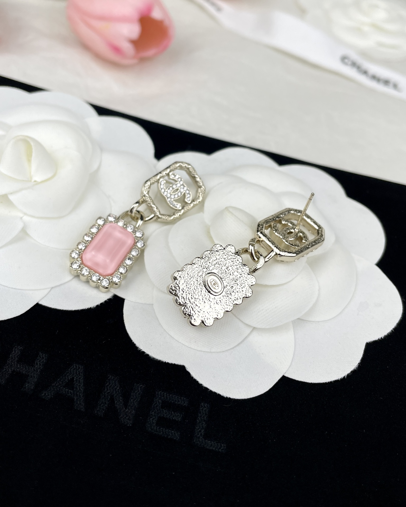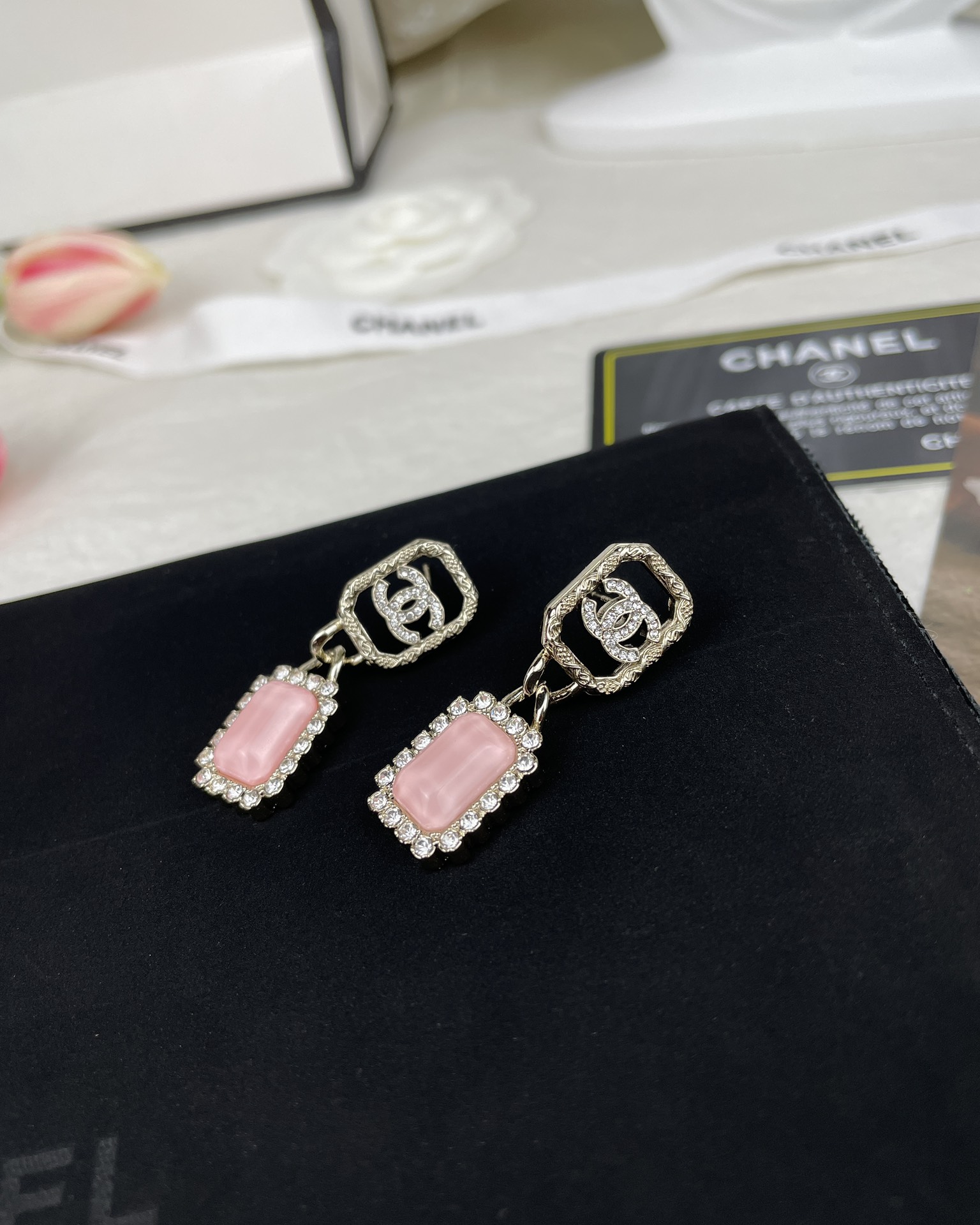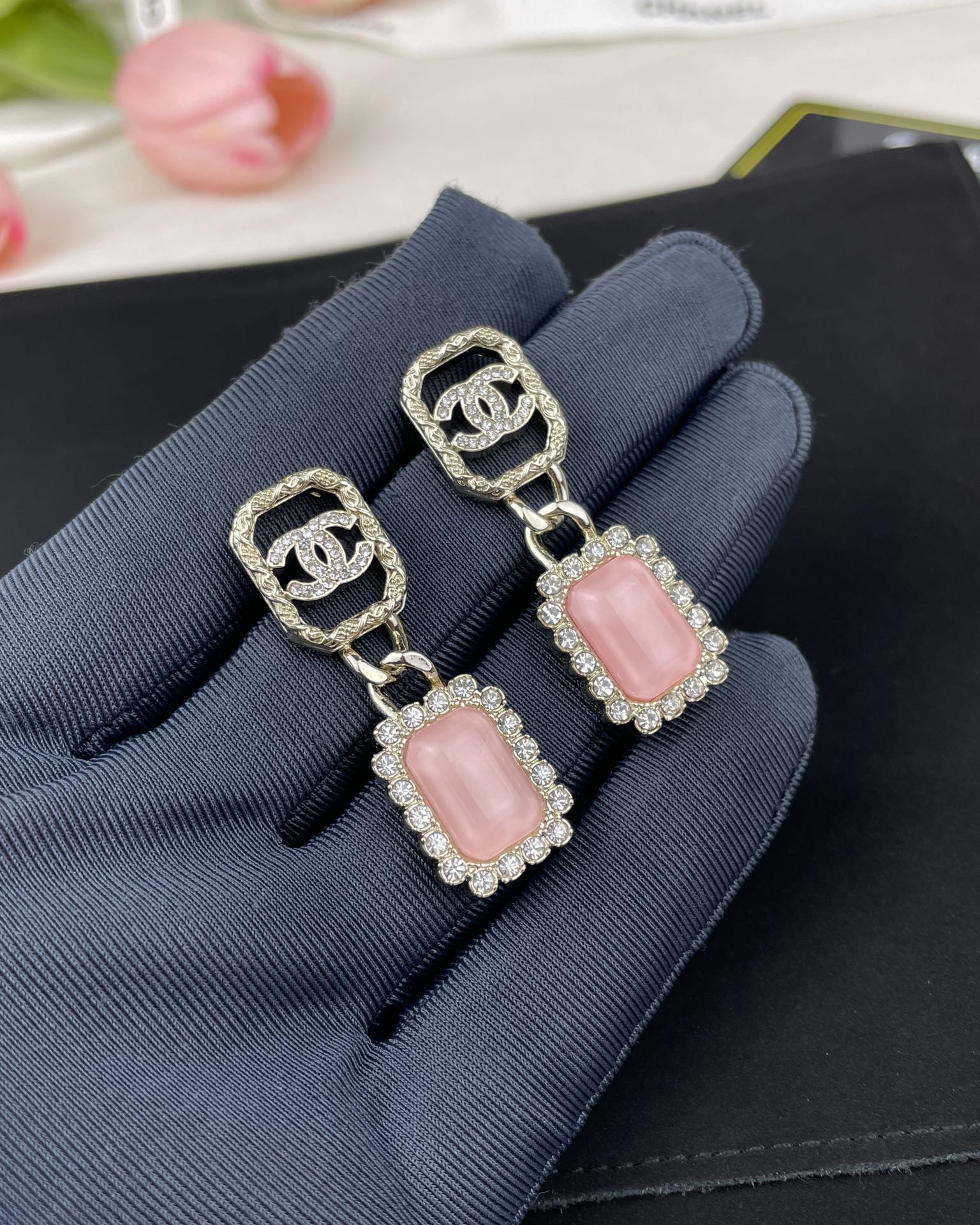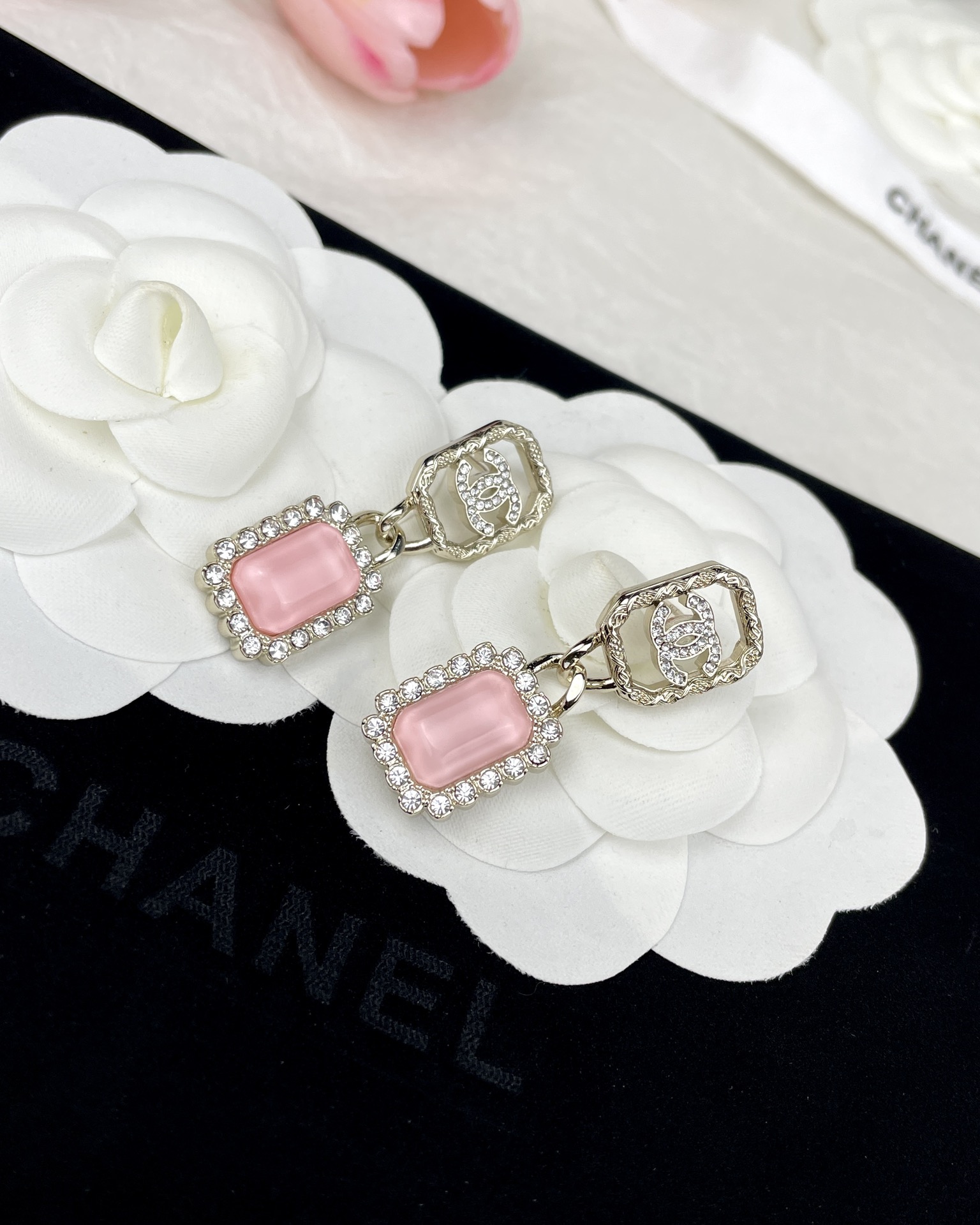 【深度定制】zp开版 CHANEL香奈儿几何镂空 双C粉色锆石 吊坠耳环 精致又百搭,千金大小姐氛围感~