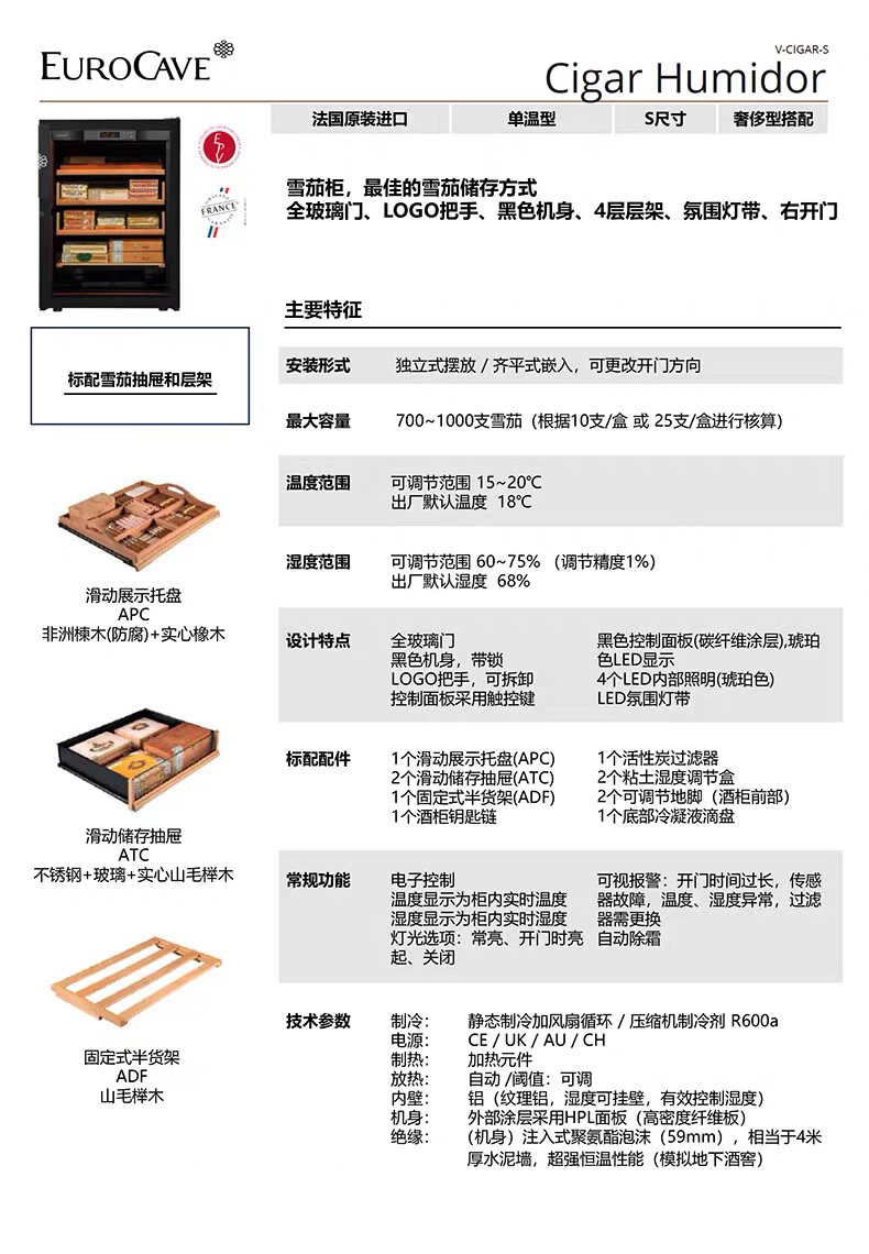 EUROCAVE V-CIGAR-S恒温恒湿雪茄柜保湿保鲜柜收藏柜205L