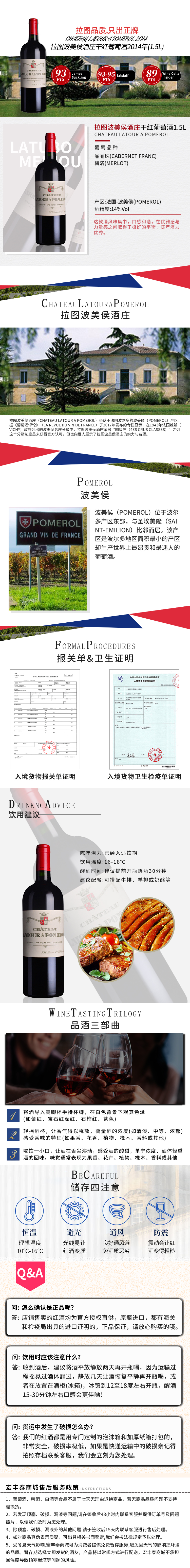 法国-拉图波美侯酒庄干红葡萄酒2014年 1.5L