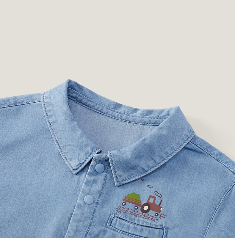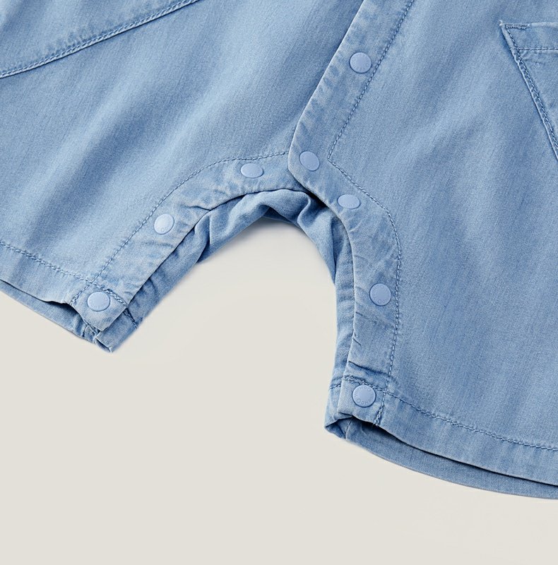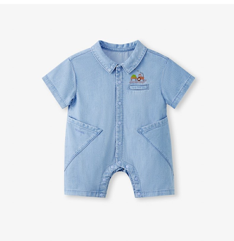 英氏童装男宝软牛仔蛤衣短袖连体衣爬服2023夏季新品YRHBJ2P235A