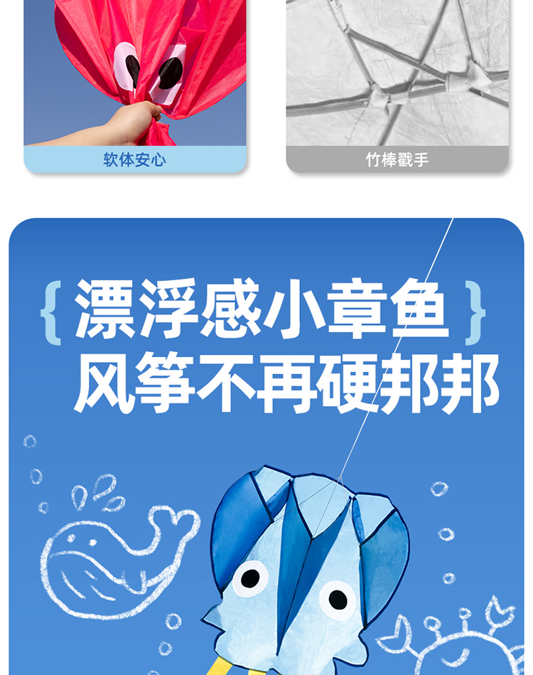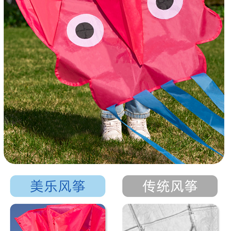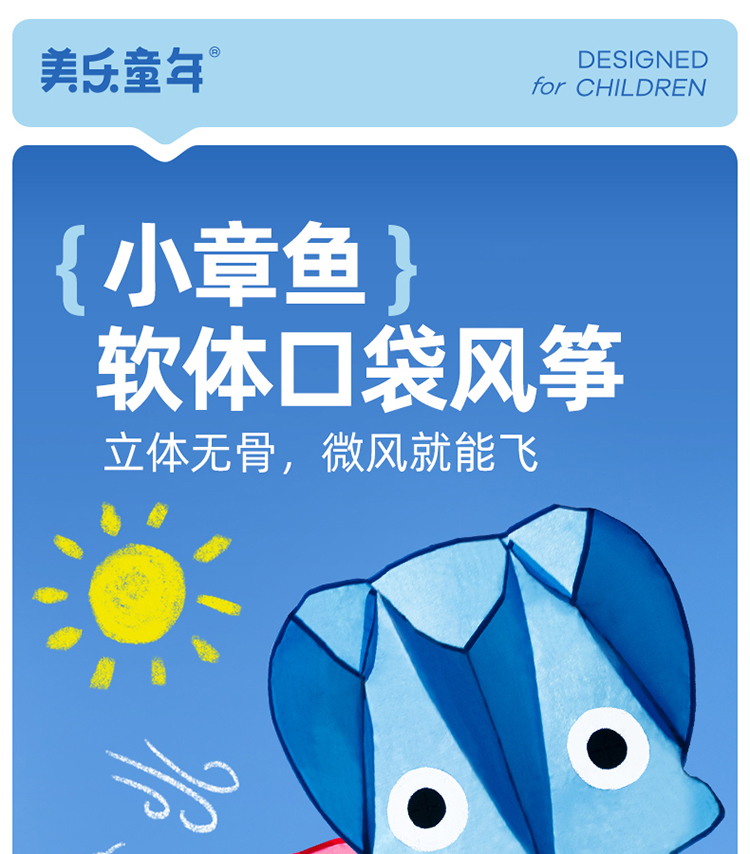 【云优选】美乐童年小章鱼口袋风筝微风易飞2025新款户外无骨手持儿童玩具