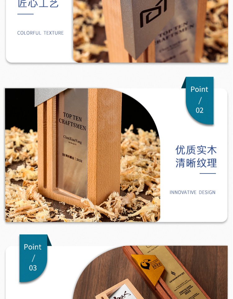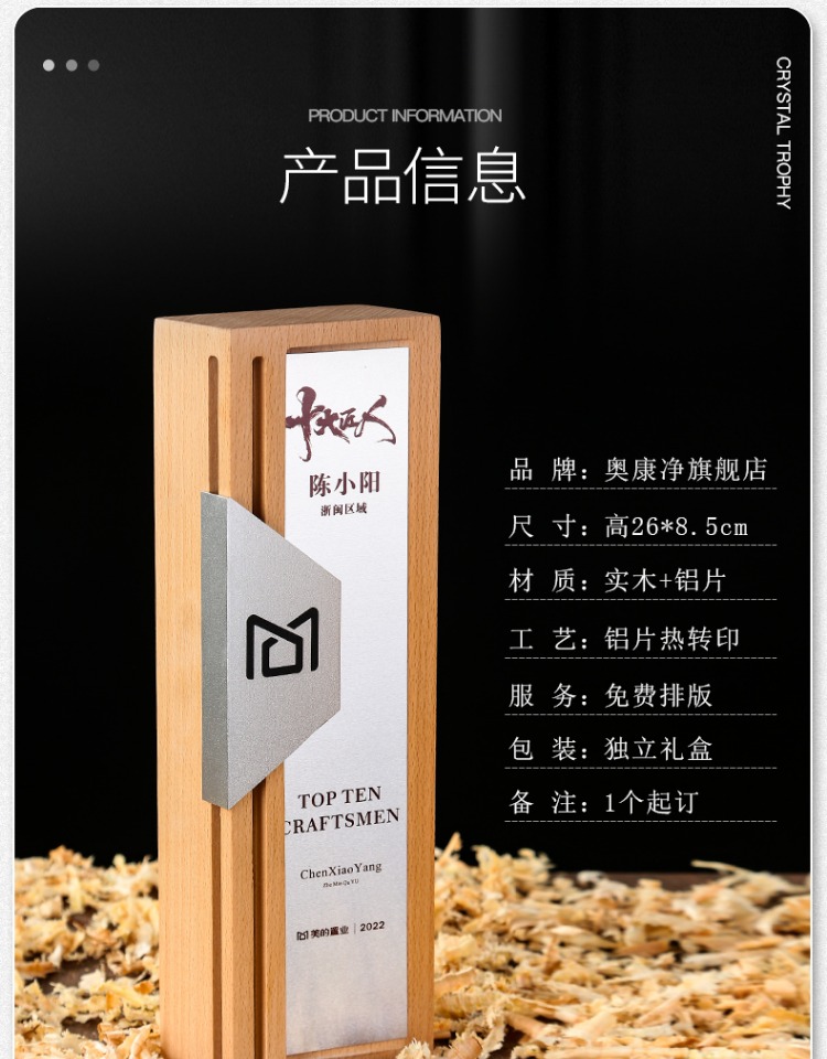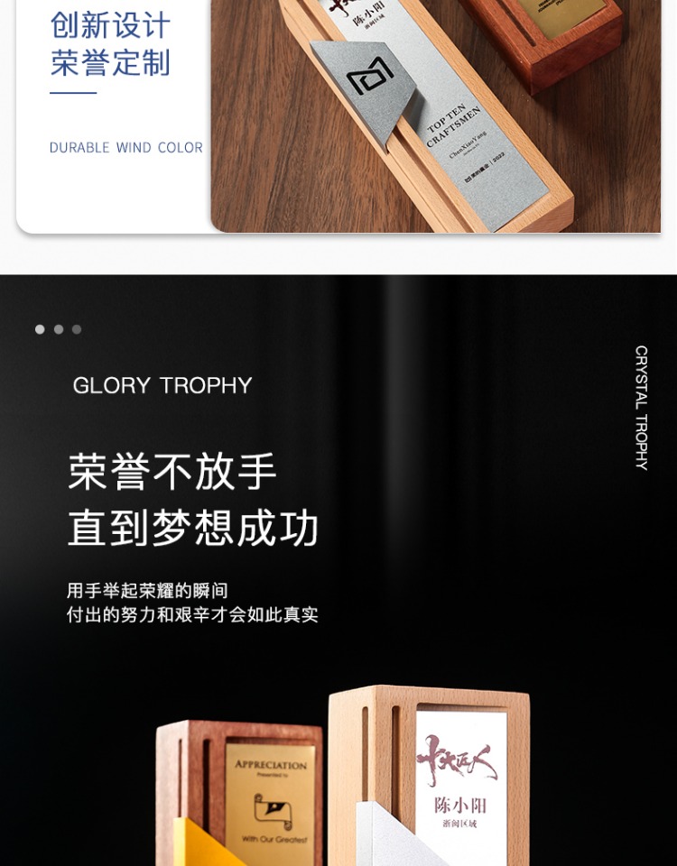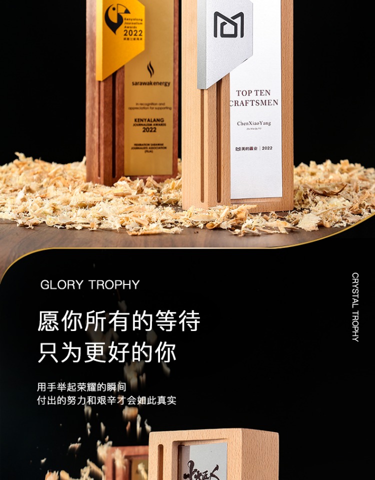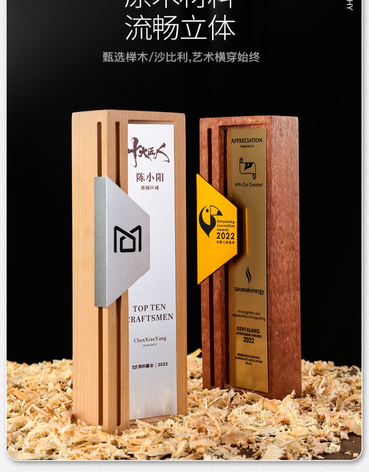 实木奖杯定制金属贴片纪念牌订制周年庆优秀员工年会荣誉奖牌定做