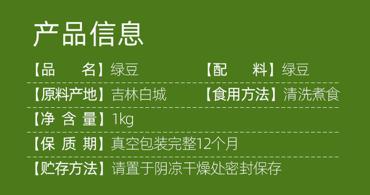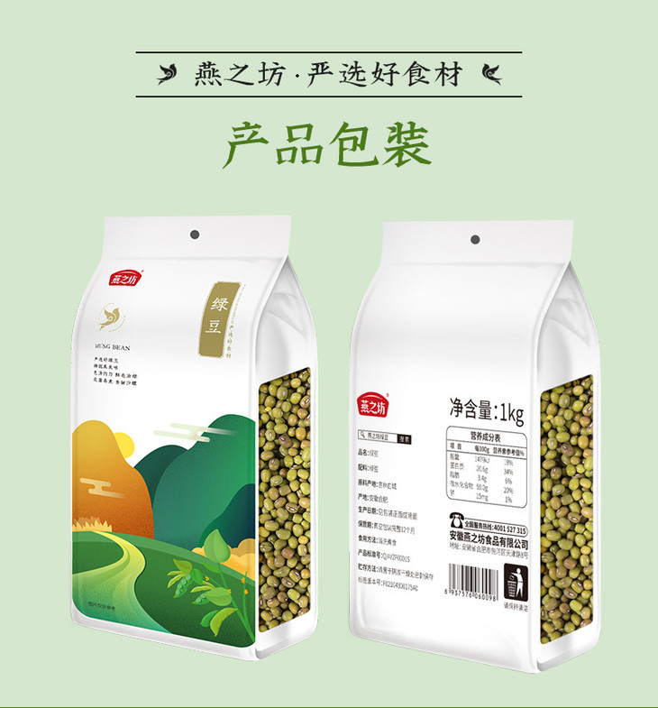 【燕之坊】东北绿豆4斤双层真空装 正宗吉林白城产五谷杂粮大豆 真空包装 可煮绿豆汤绿豆粥