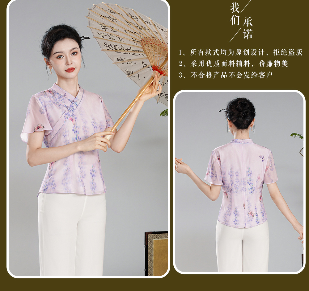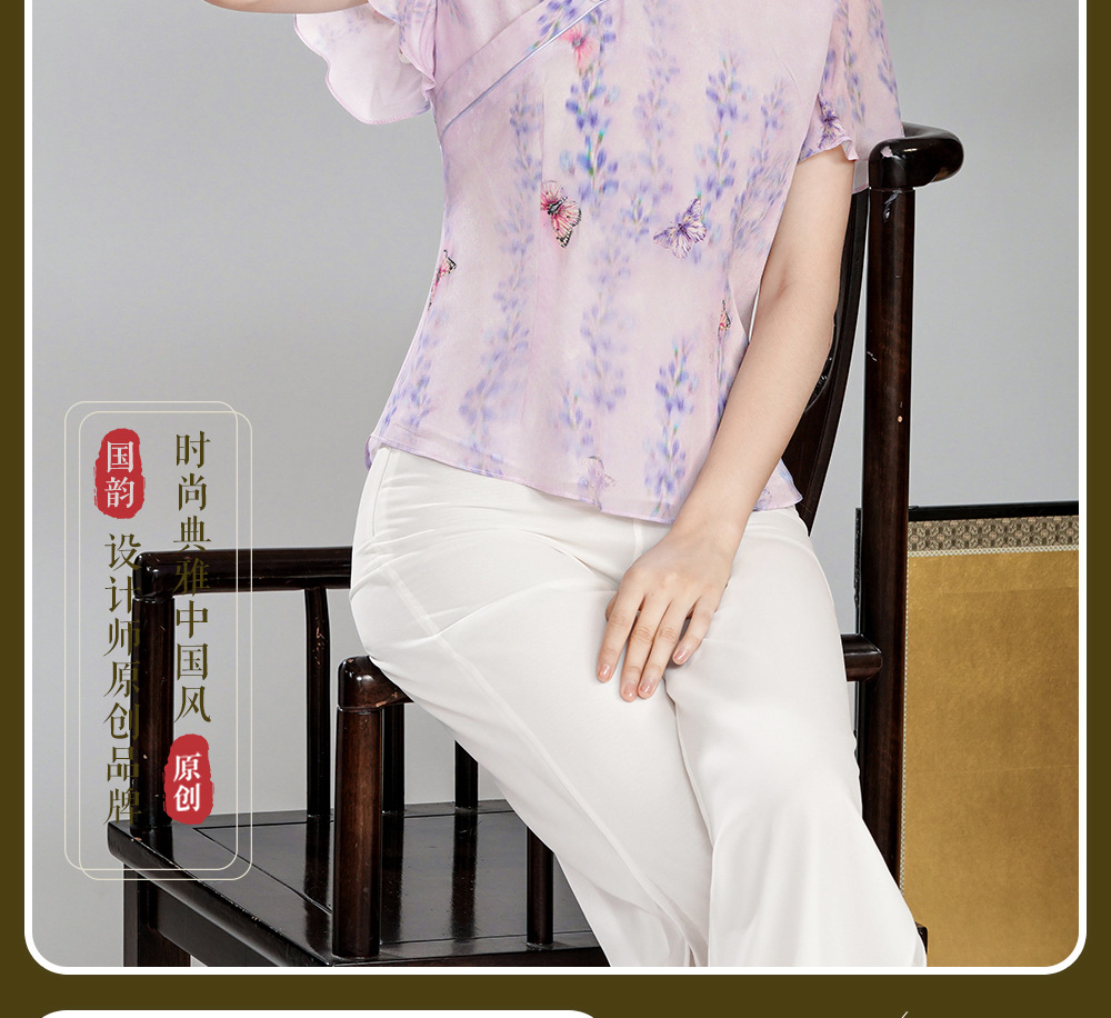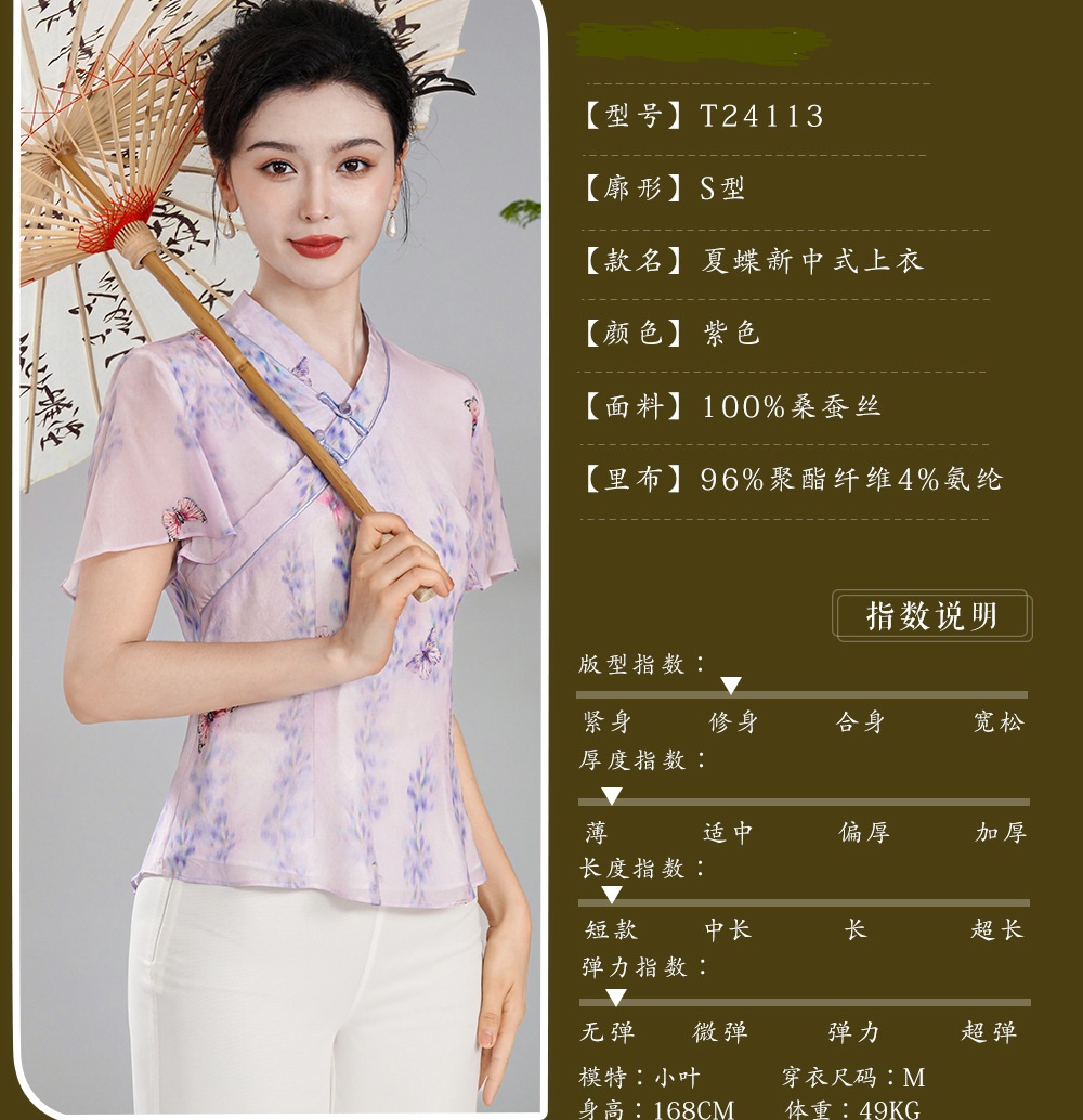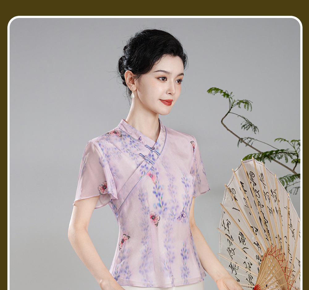 【夏蝶】真丝汉交领新中式国风,日常改良喇叭袖唐装上衣XGT- T24113