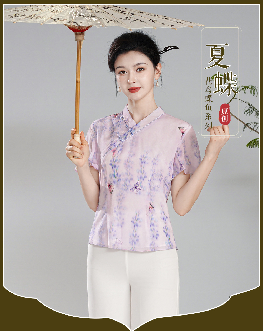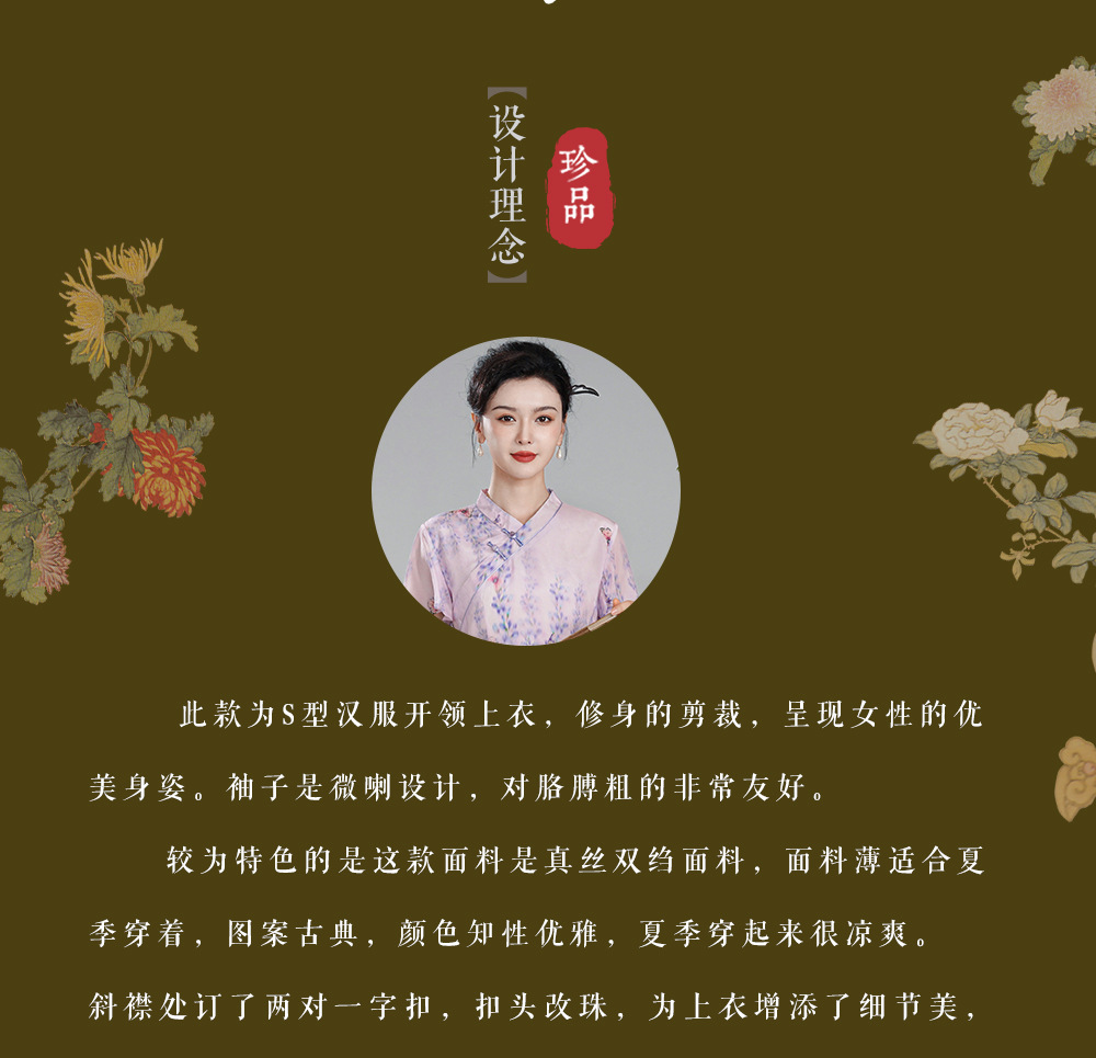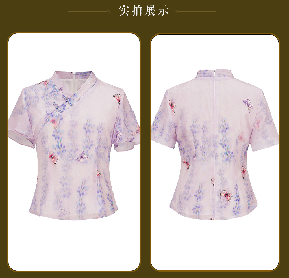 【夏蝶】真丝汉交领新中式国风,日常改良喇叭袖唐装上衣XGT- T24113