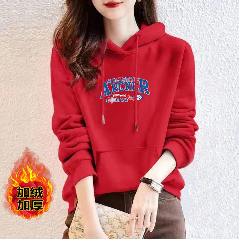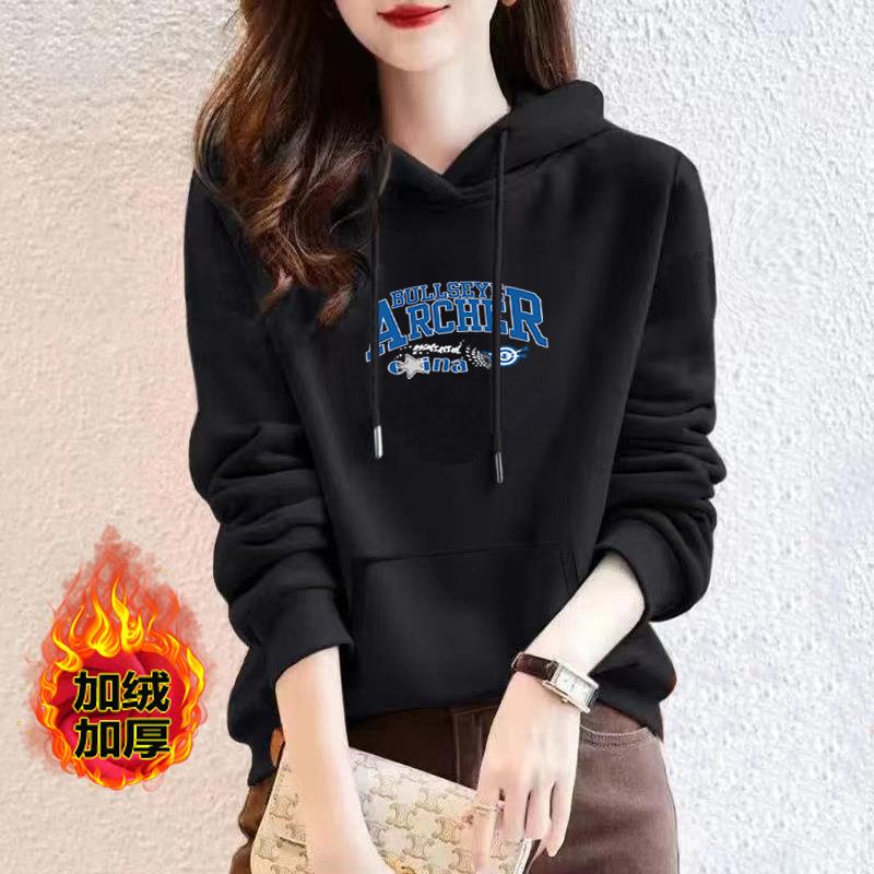 连帽加绒卫衣棉质正肩运动宽松休闲时尚印花多色上衣女潮秋冬外套