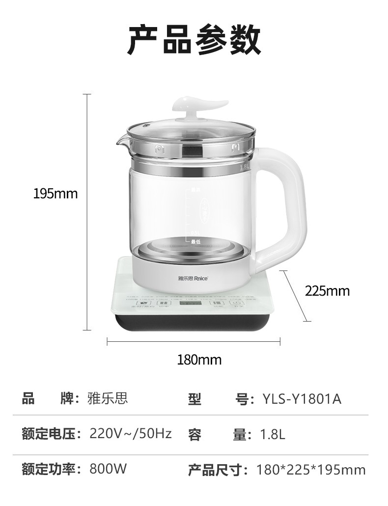 雅乐思(Rnice) 雅乐思 Rnice 养生壶多功能电热烧水小型煮茶器花茶 YLS-Y1801A