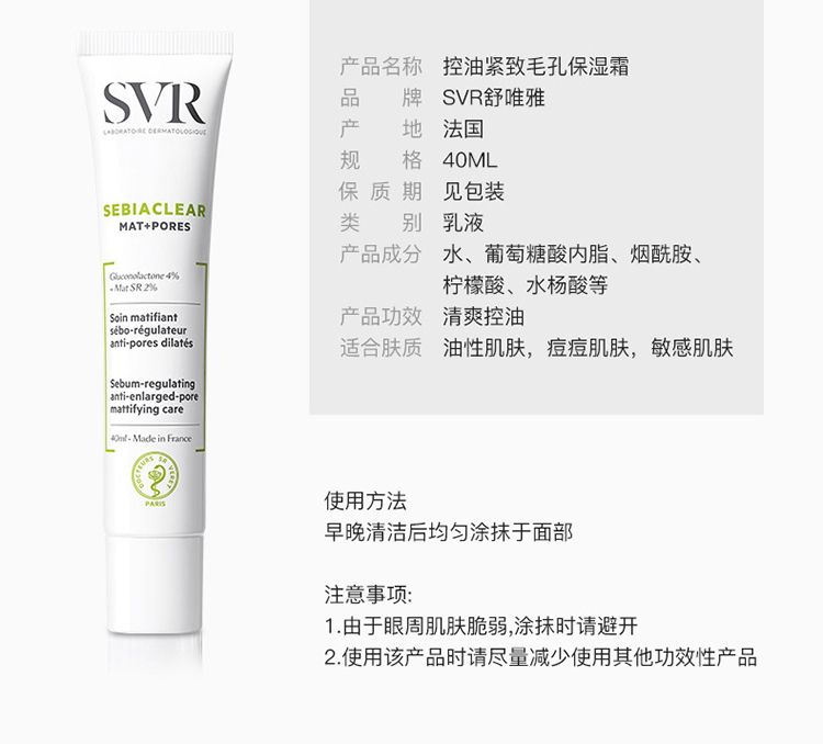 【预售 急单慎拍】SVR舒唯雅 控油保湿霜40ml