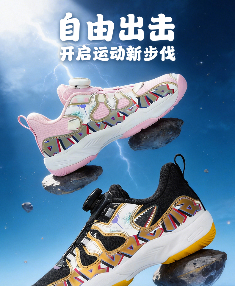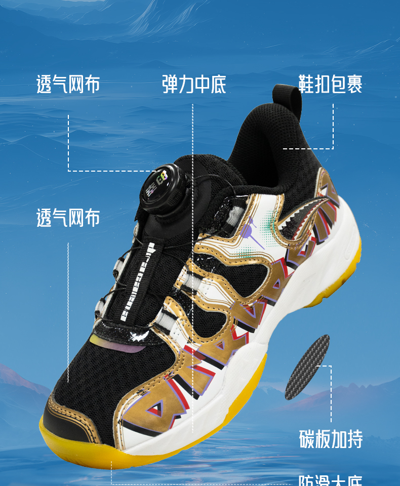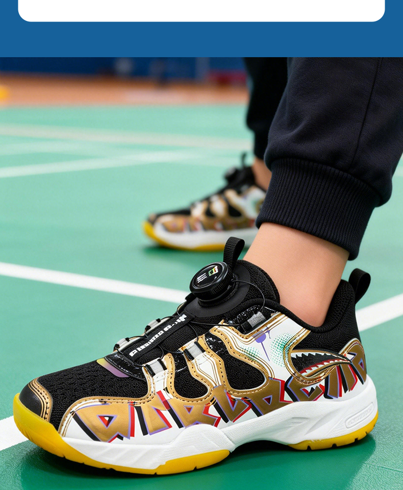 的幸儿童羽毛球训练鞋 6-12 岁中大童 旋钮调节 耐磨防滑专业运动童鞋