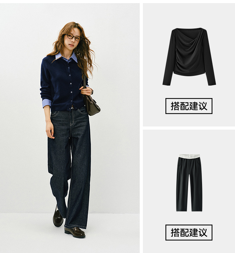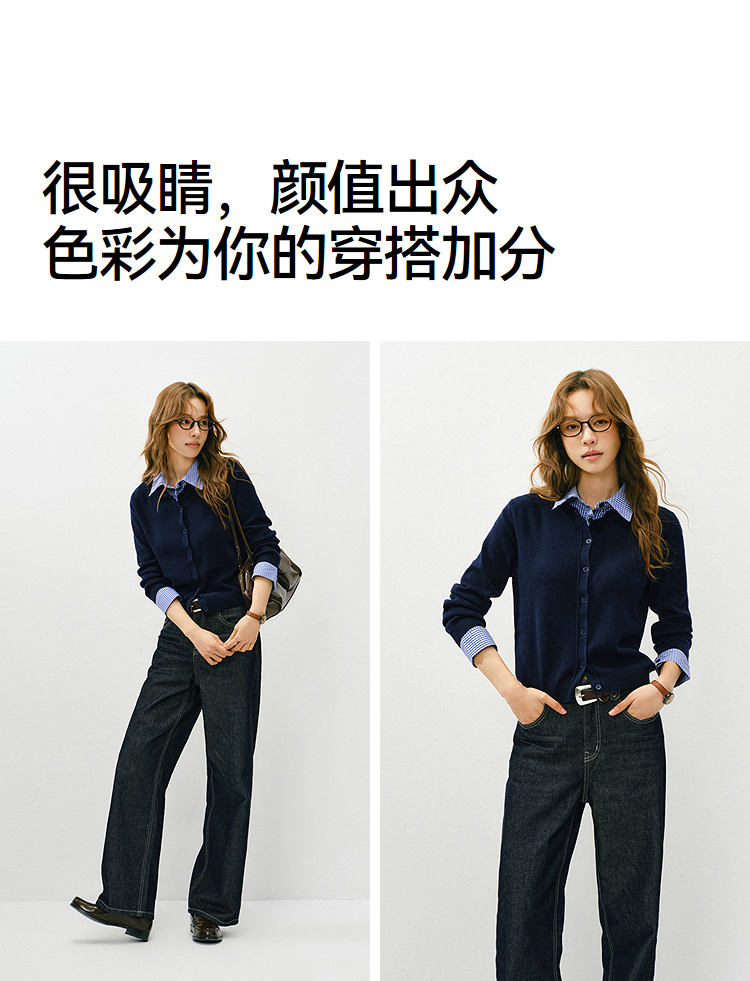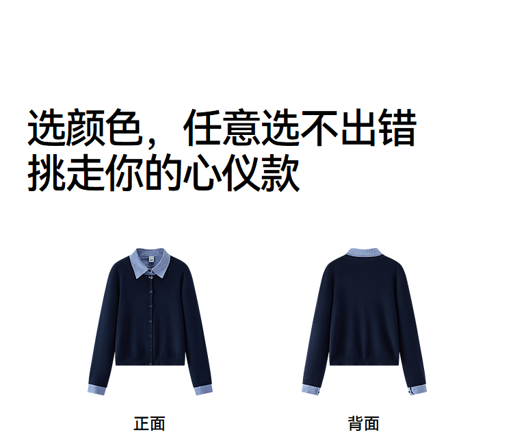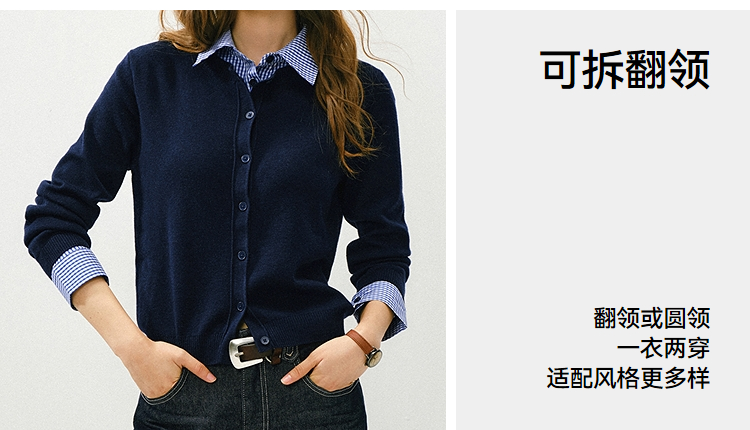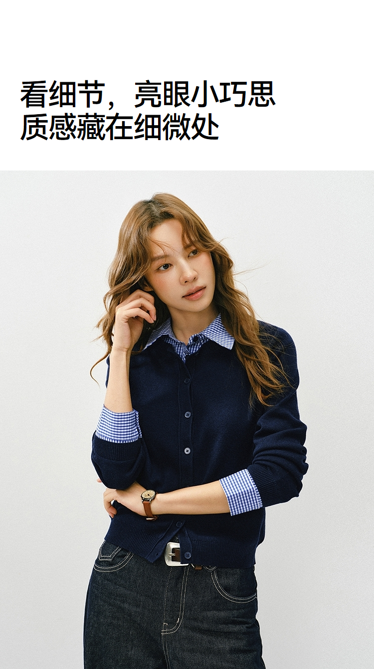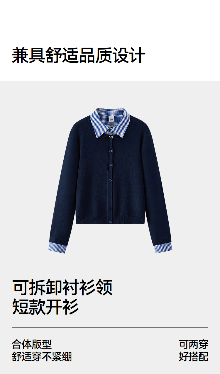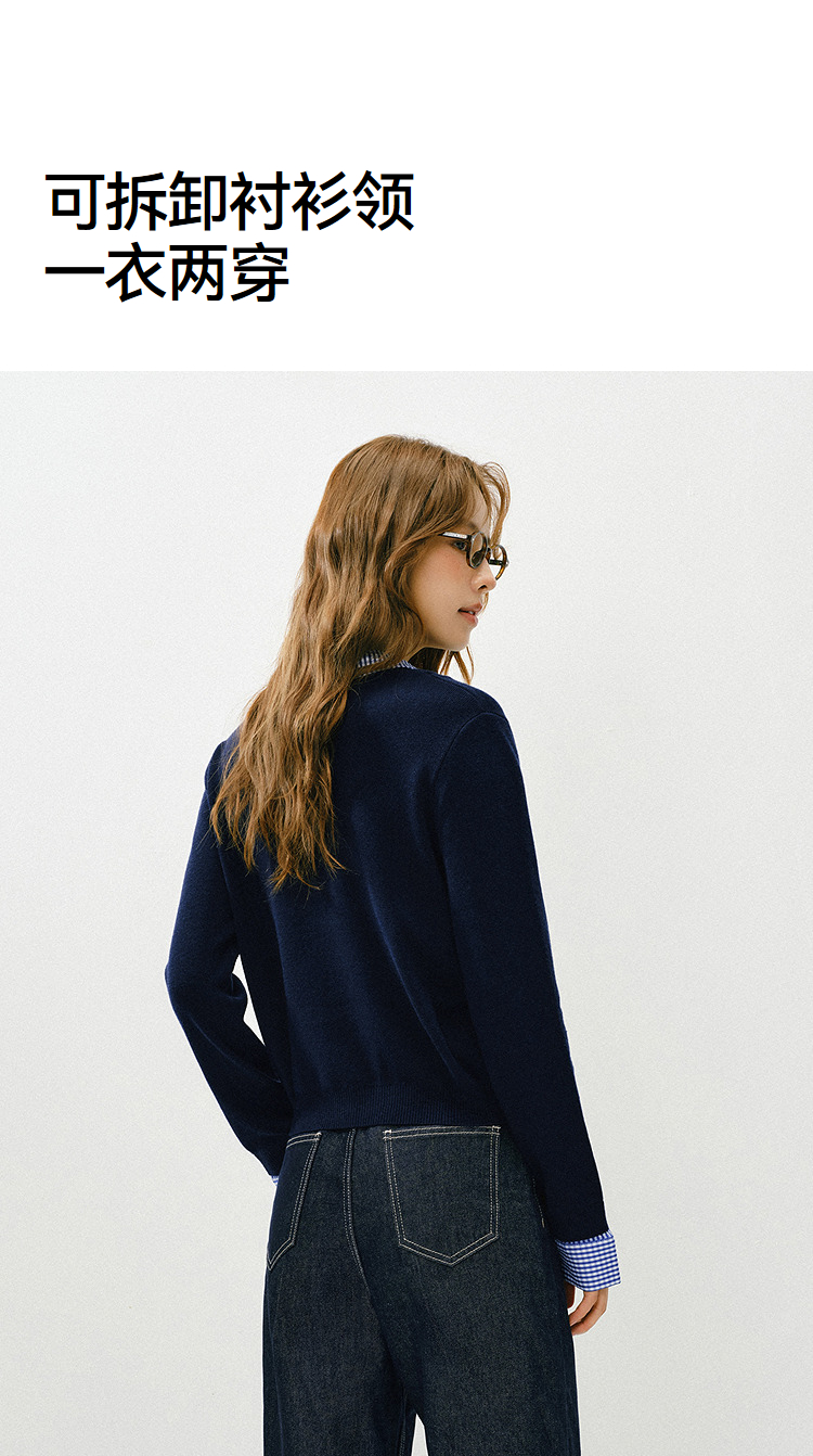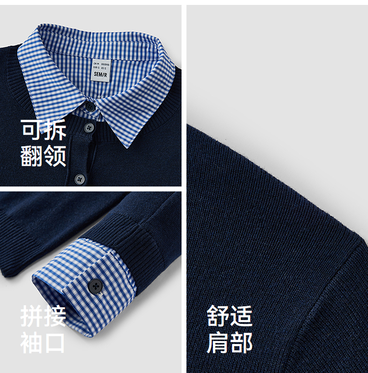 森马针织开衫女春季短款可拆卸格纹衬衫领上衣拼接百搭通勤打底衫