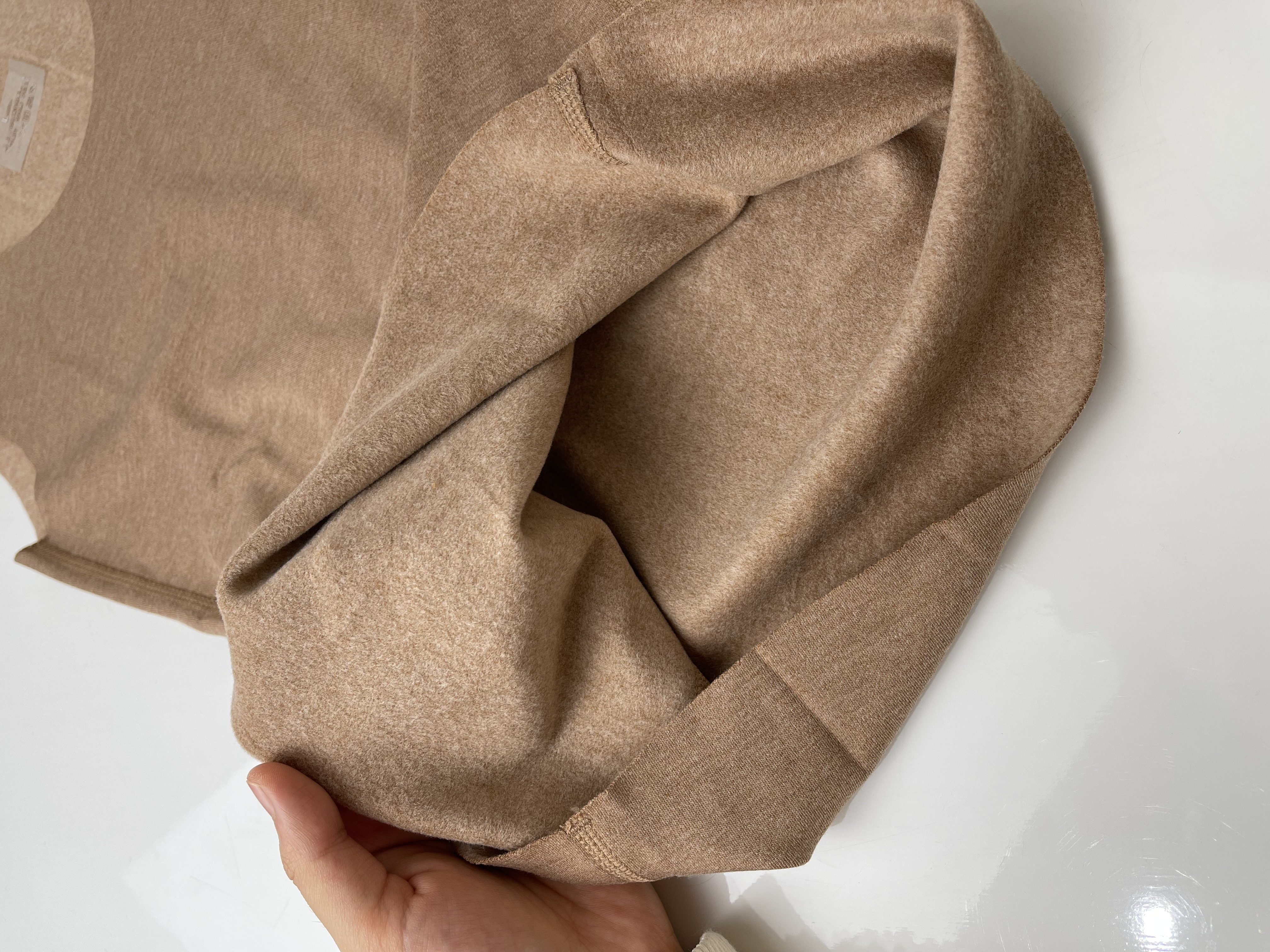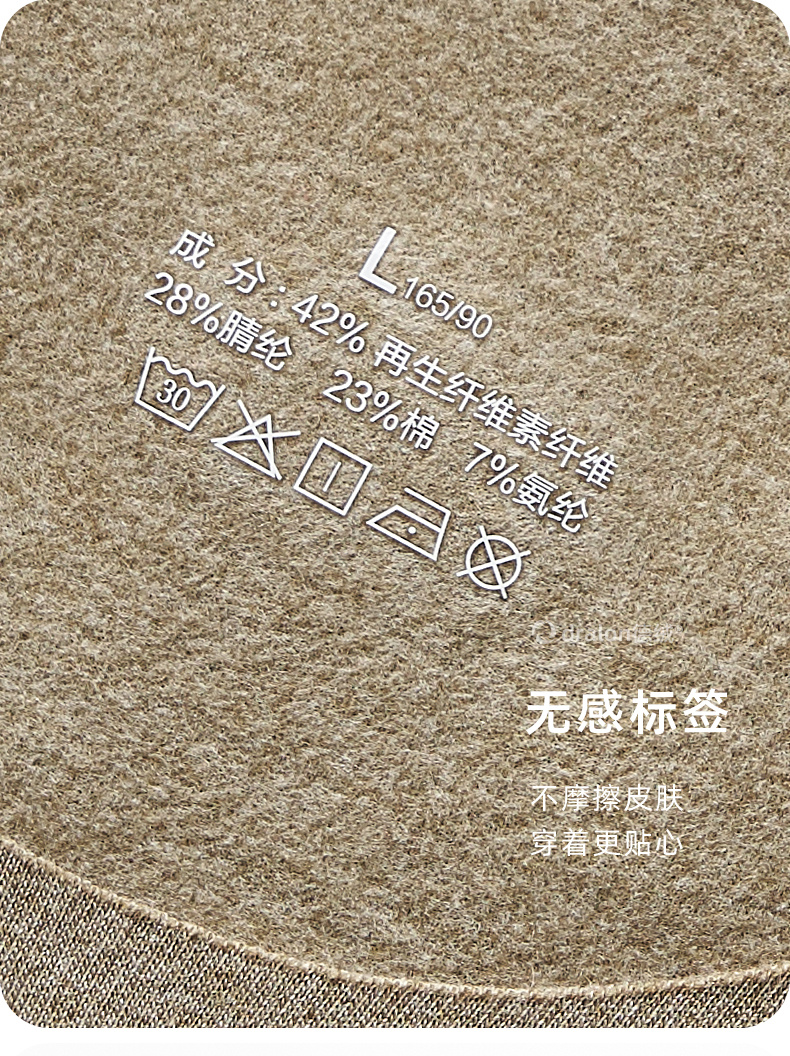 【面料】面料克重320g,成分42%再生纤维素纤维28%腈纶23%棉7%氨纶,德绒单磨毛保证了面料的触感和暖感,腈纶纤维吸收皮肤呼吸产生的湿气,转化为热能吸湿发热,磨毛工艺,热量不易流失锁住温暖。