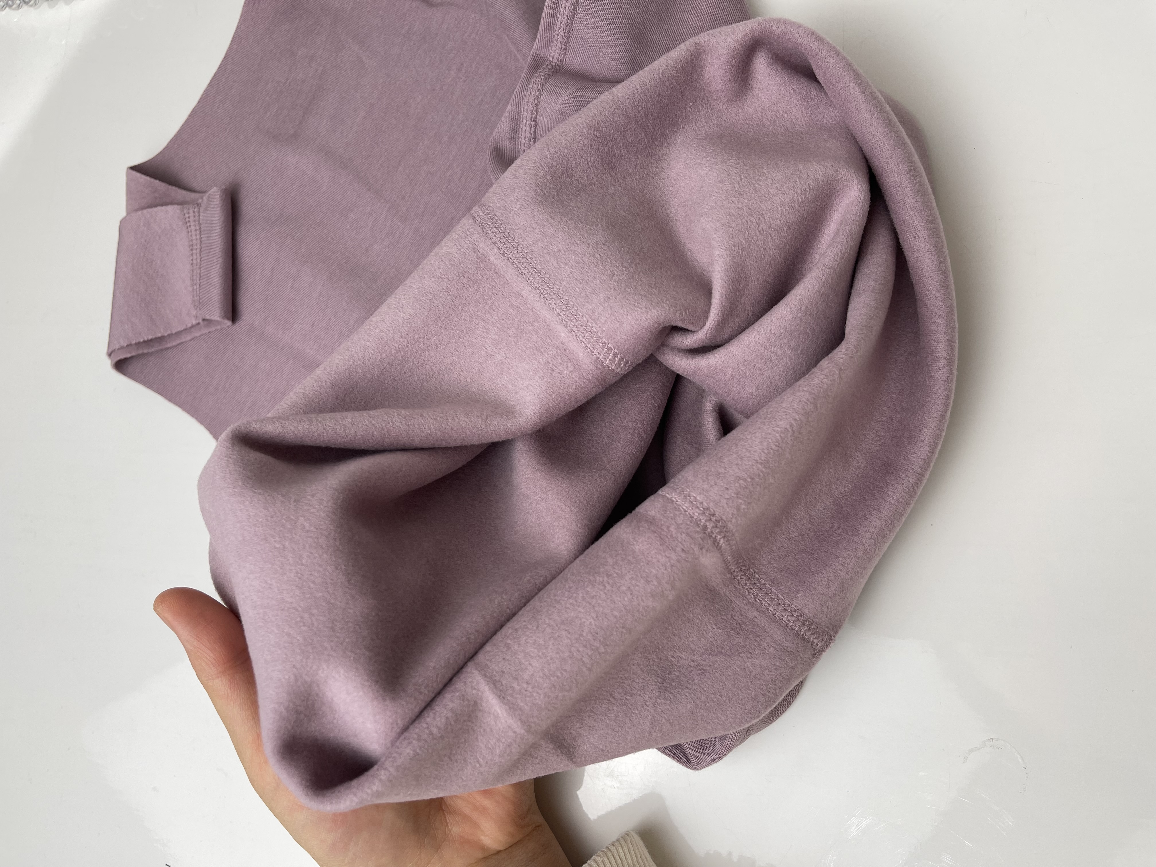 上这种面料本身十分柔软浓密,无缝一体,可以完美达到保暖、修身的效果。