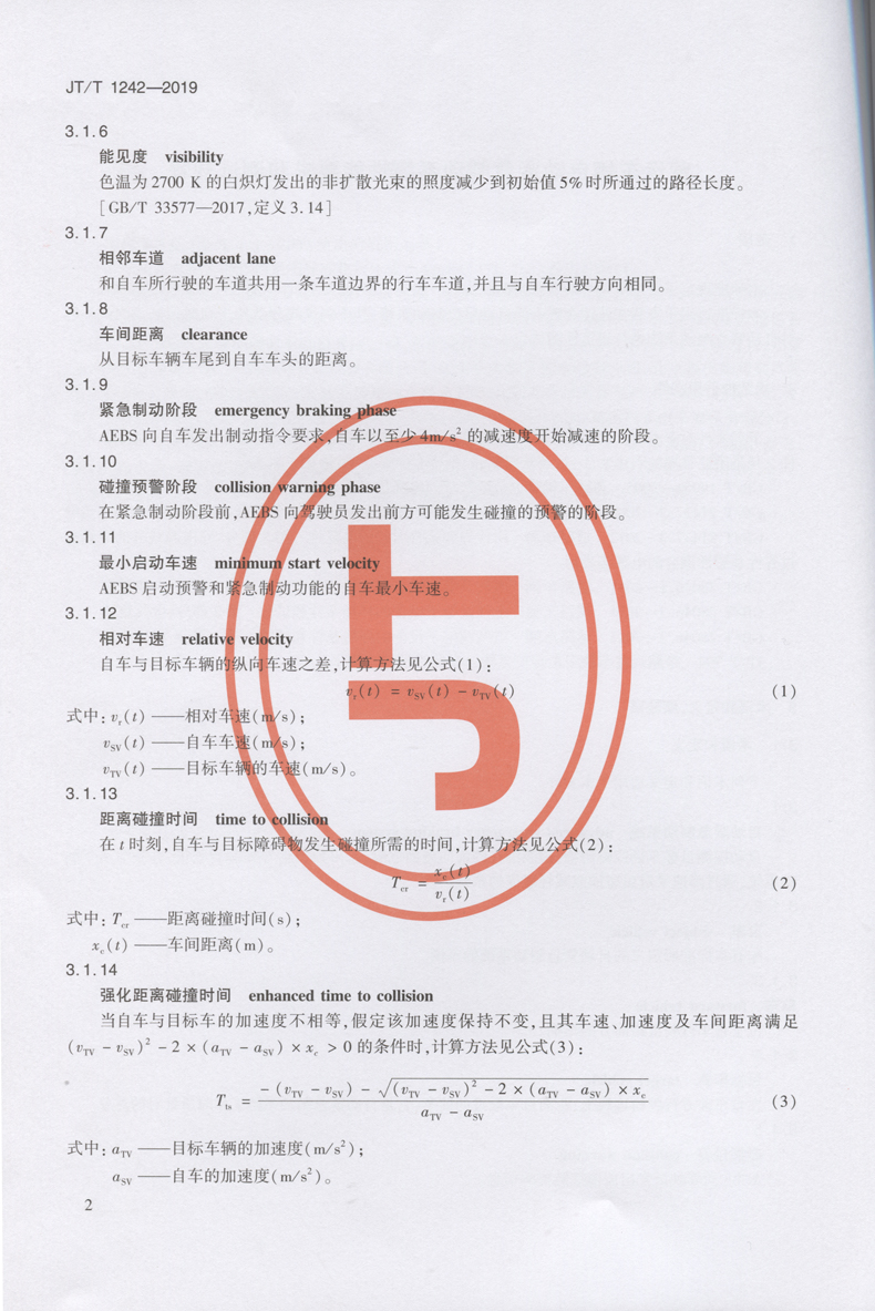 营运车辆自动紧急制动系统性能要求和测试规程(JT/T 1242—2019)151143131