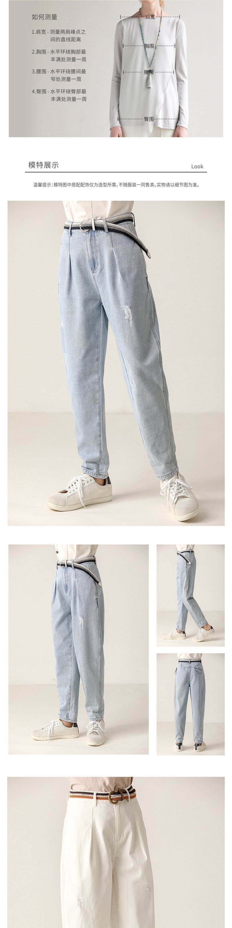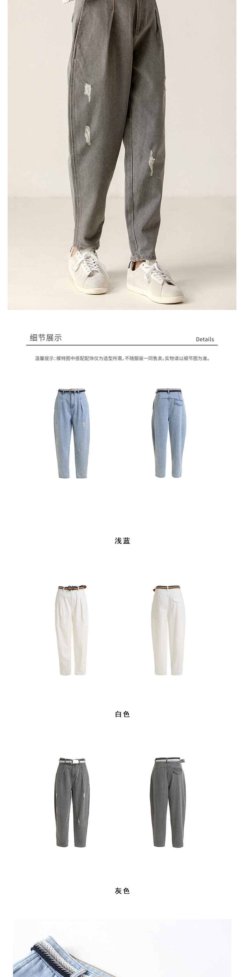 famecoco范可儿破洞牛仔裤宽松洗水老爹裤F203GA021