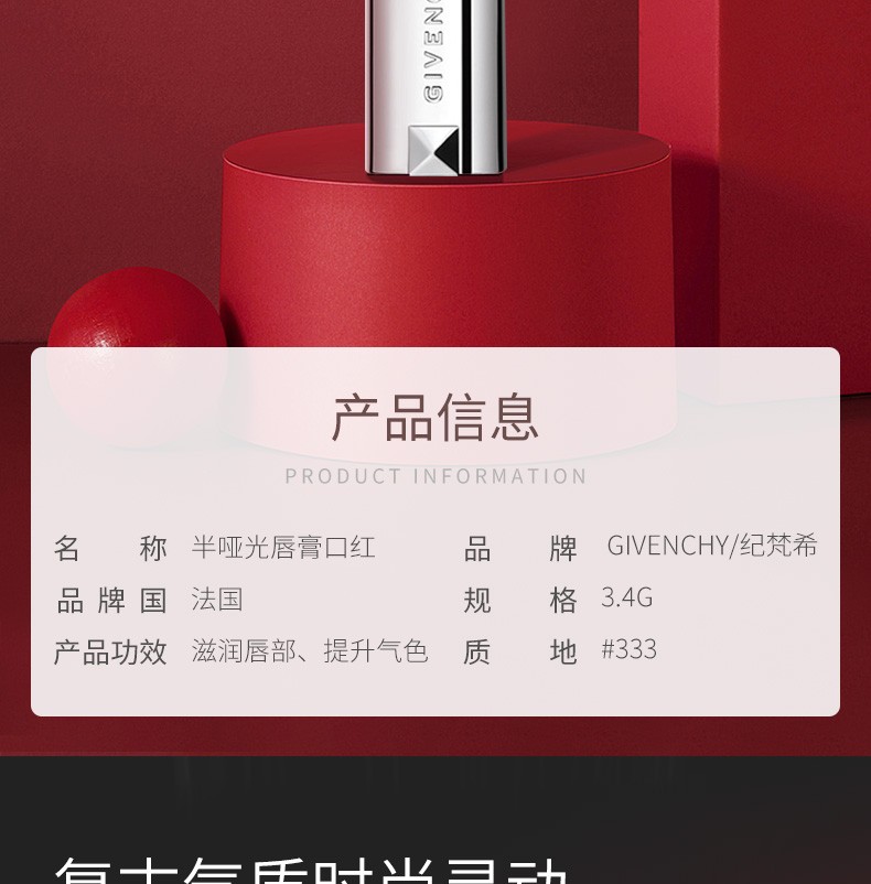 GIVENCHY/纪梵希 小羊皮半哑光唇膏口红#333 3.4G