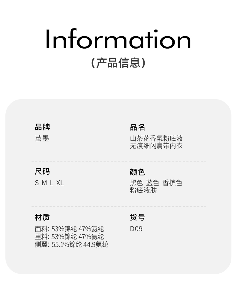 【2件装】茧墨 山茶花香氛粉底液无痕细闪肩带内衣