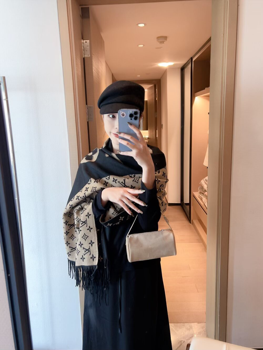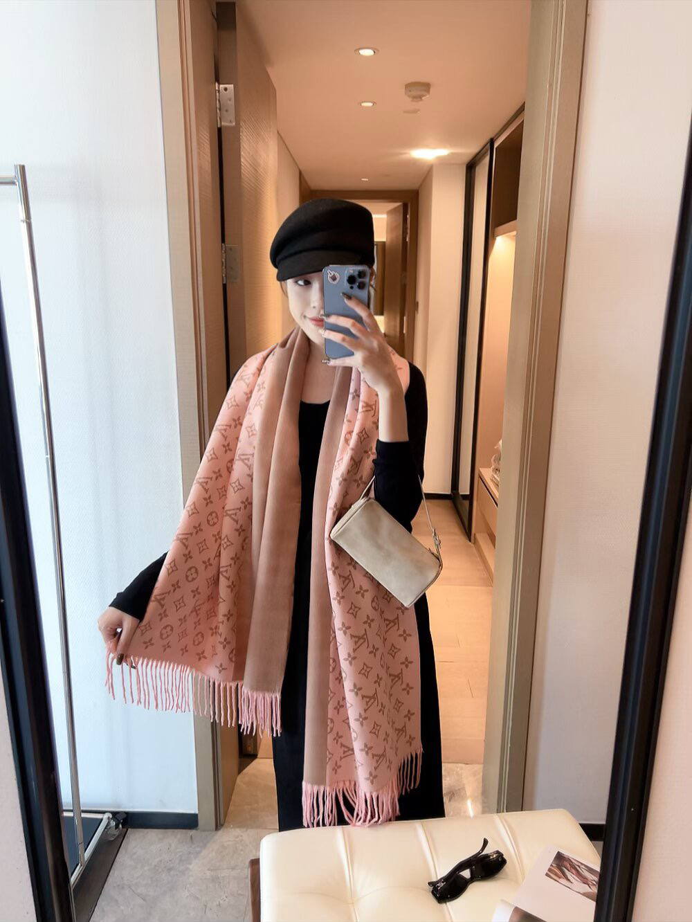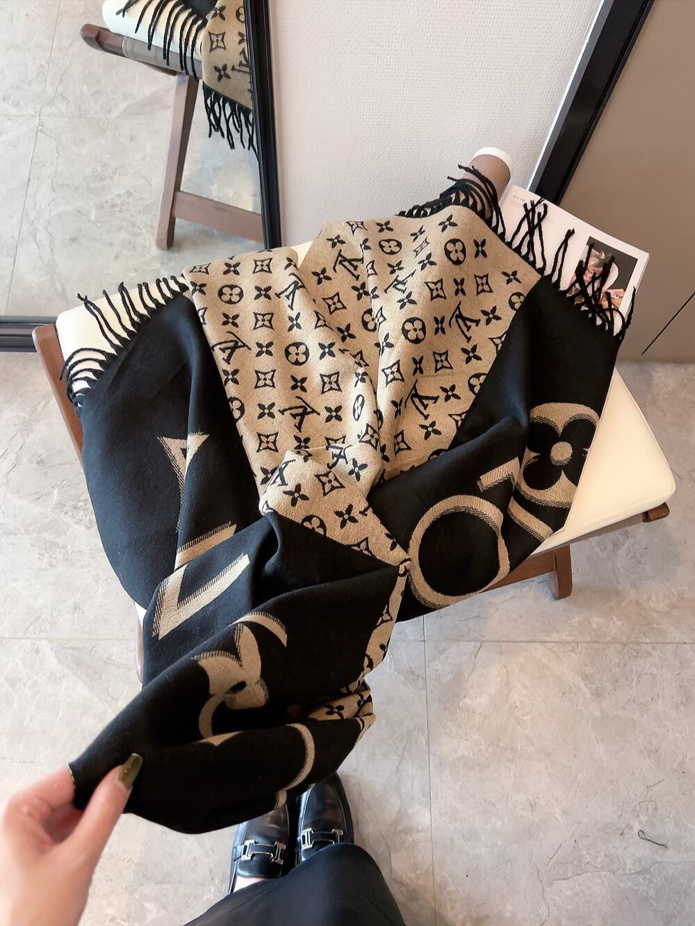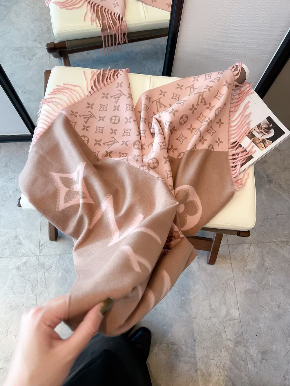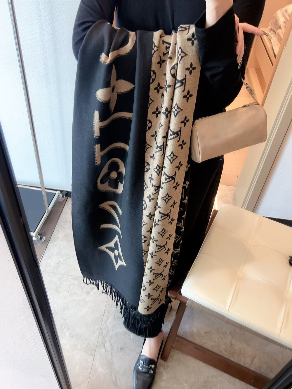 秋冬特惠💰150 LV围巾 当季双面热款女羔绒两用围巾