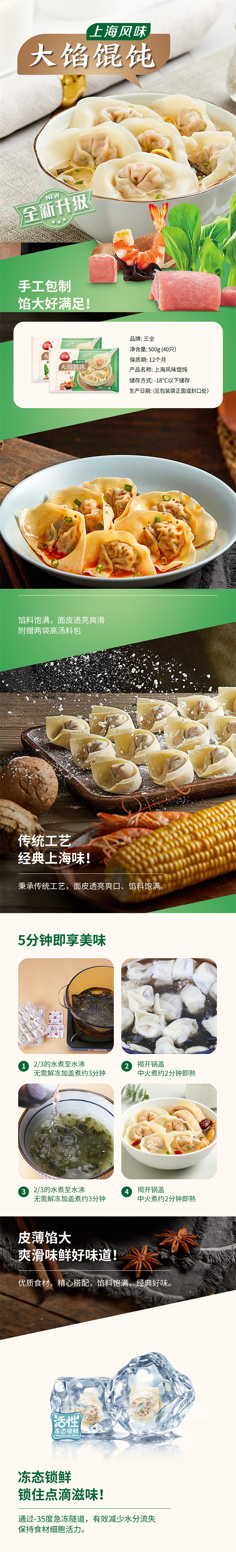 三全 上海风味荠菜猪肉馄饨 500g*2(商)