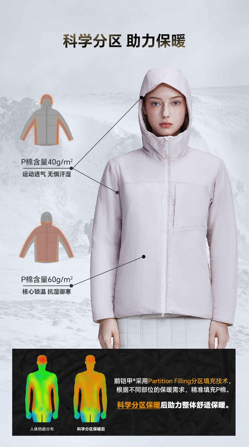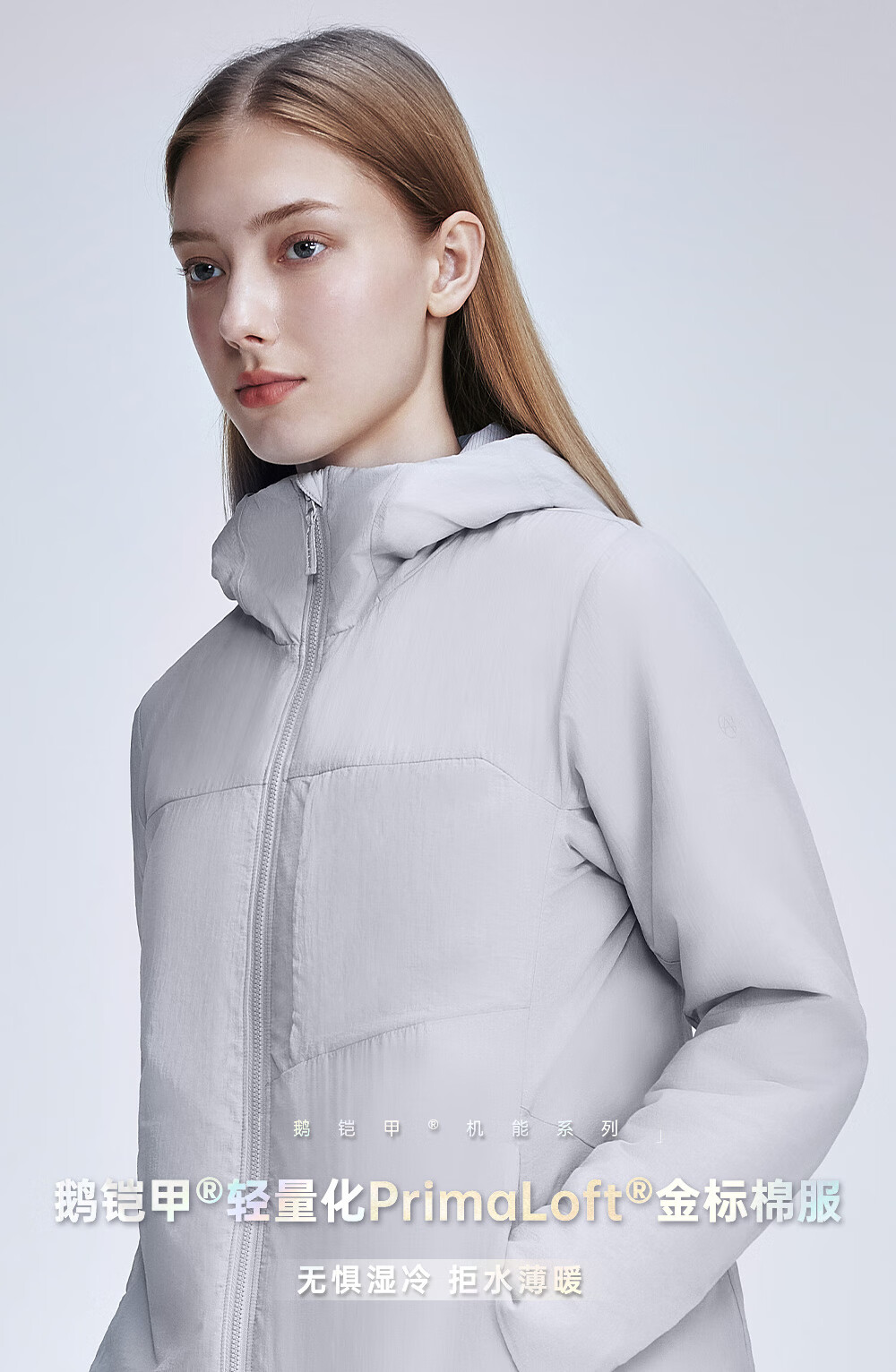 天石鹅铠甲Primaloft金标P棉棉服女士连帽户外运动夹克城市轻户外G434