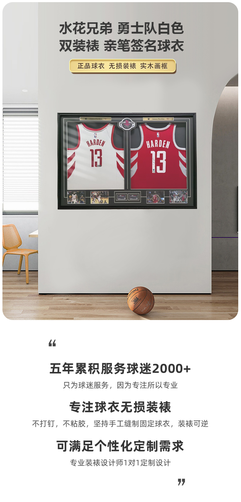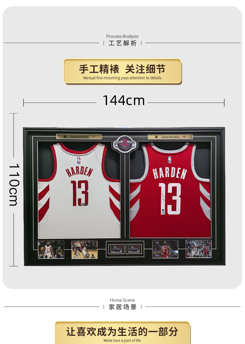 收藏系列 哈登 火箭队1号 双装裱 亲笔签名球衣