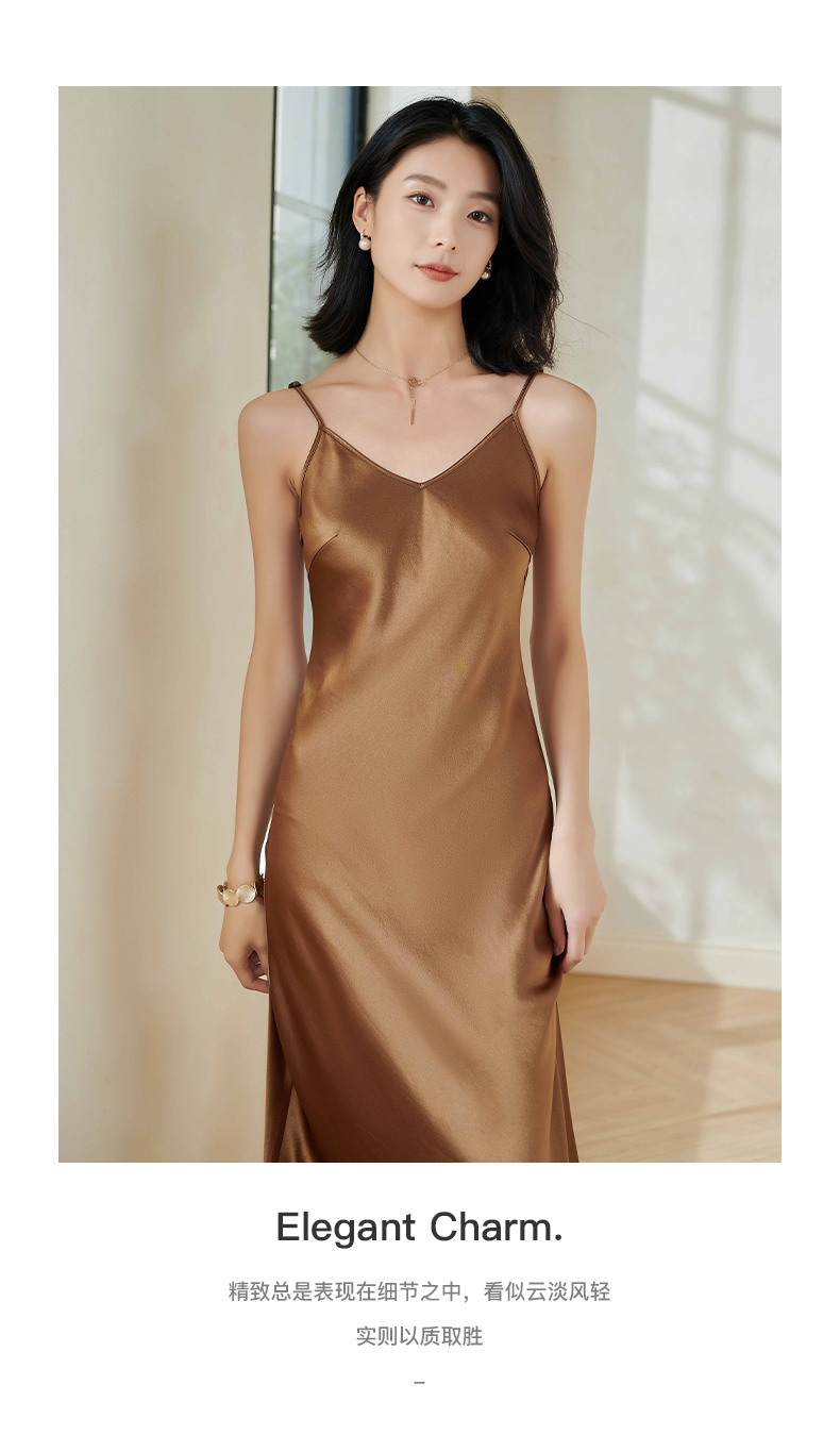 琥珀醋酸吊带裙 米思阳2026春季新款优雅气质修身搭配修身连衣裙女0215