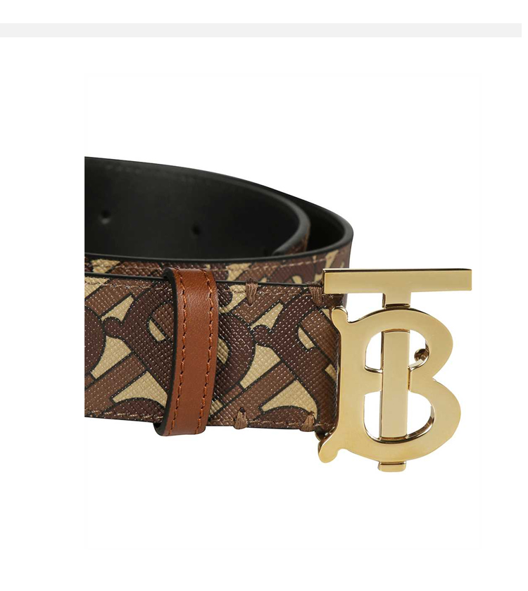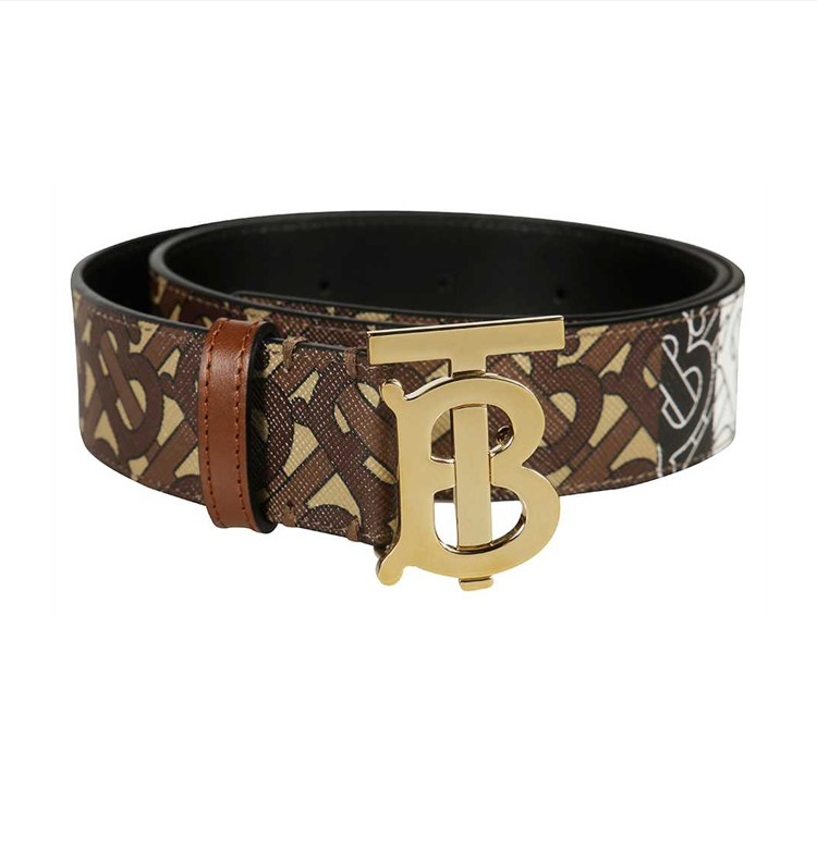 【二】BURBERRY 巴宝莉 女士专属标识条纹环保帆布拼皮革腰带 混色 8018991 A7432