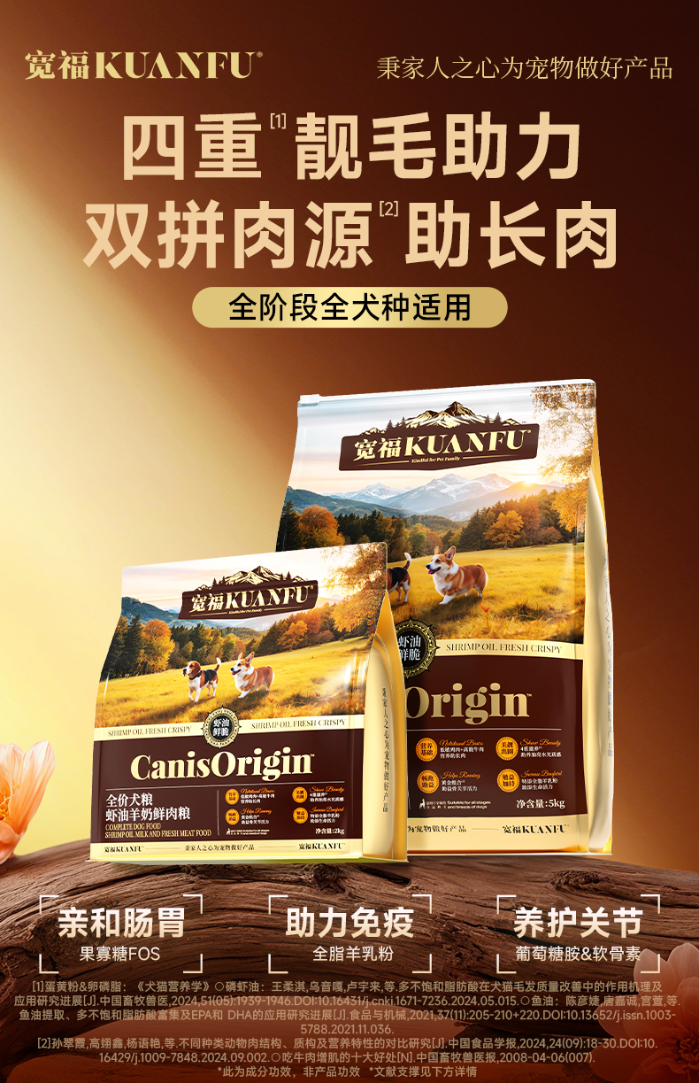 【新品】【虾油羊奶鲜肉犬粮】宽福 鸡肉 牛肉双重肉源 蛋黄粉 磷虾油 鱼油 卵磷脂 帮助狗狗毛发靓丽 双重护力关节 多重果蔬 营养均衡