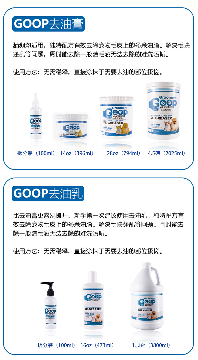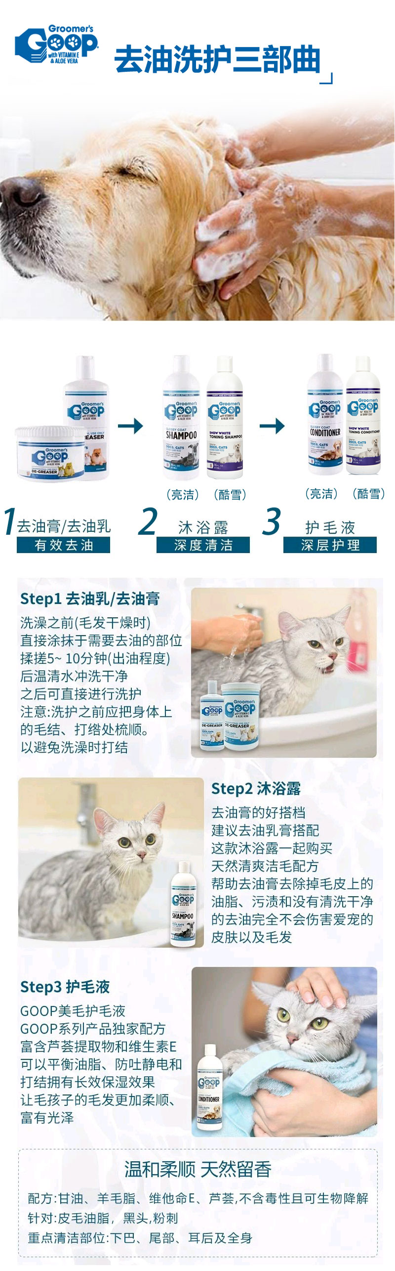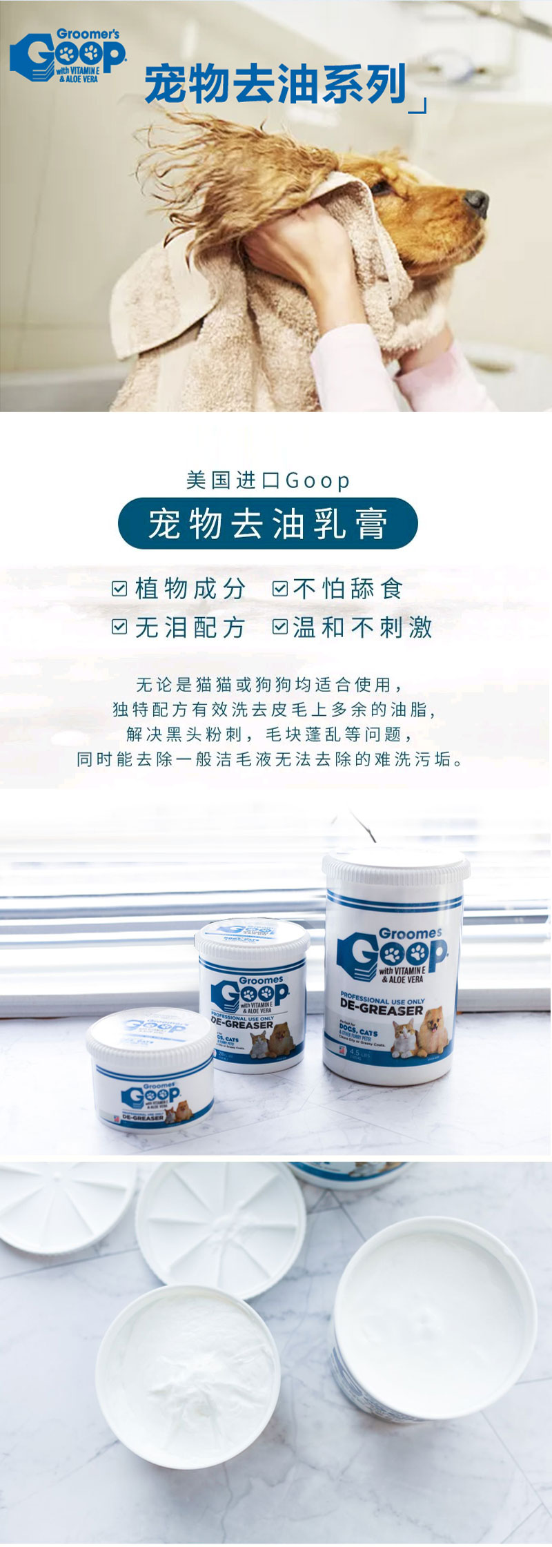美国Goop去油膏 宠物沐浴露护毛素 去黑下巴油尾巴黄胡子 猫狗通用