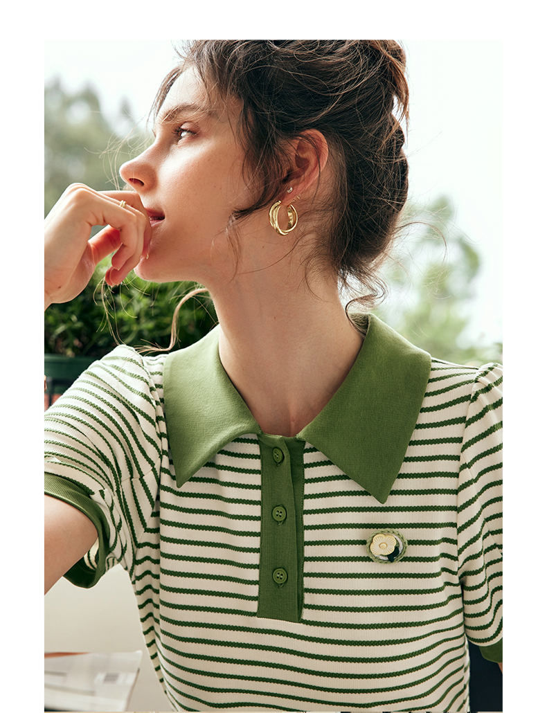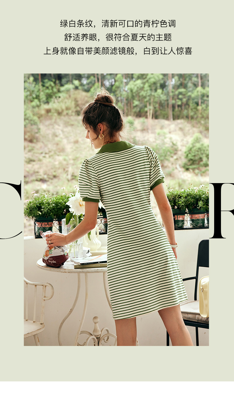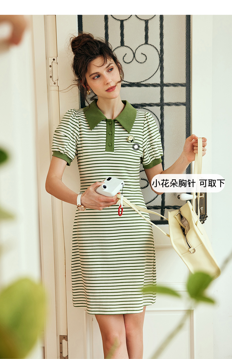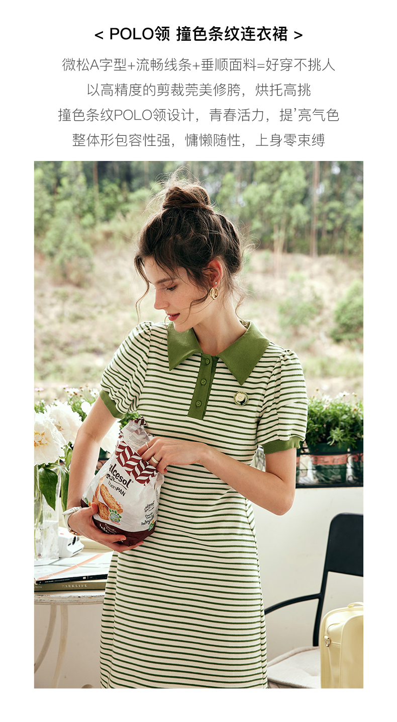 OLrain欧芮儿法式POLO领条纹连衣裙女夏季2023年新款小清新卫衣裙