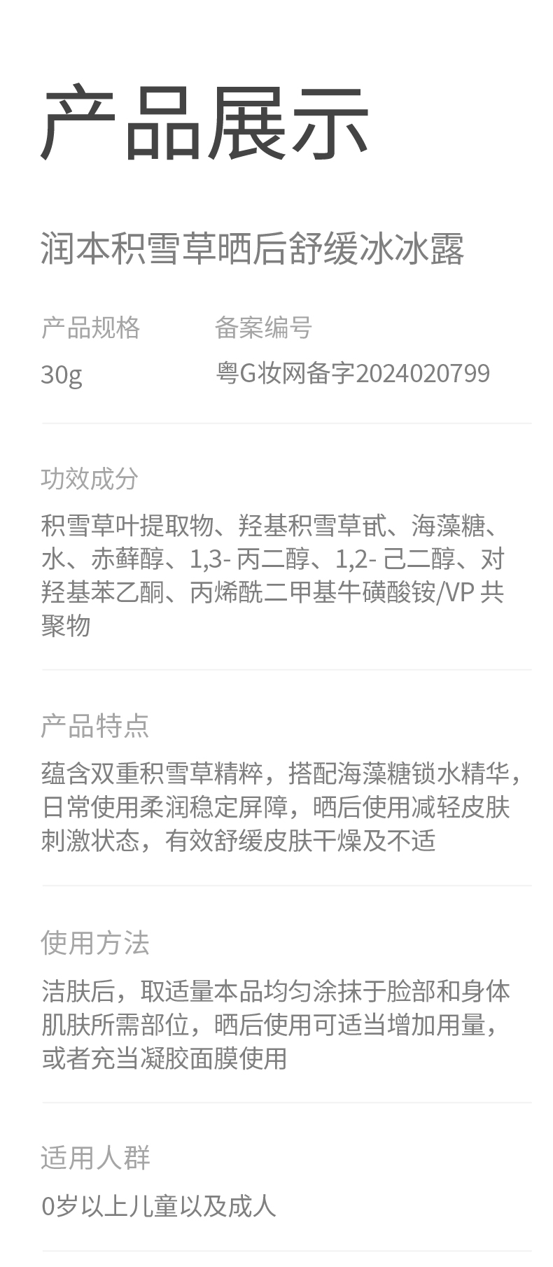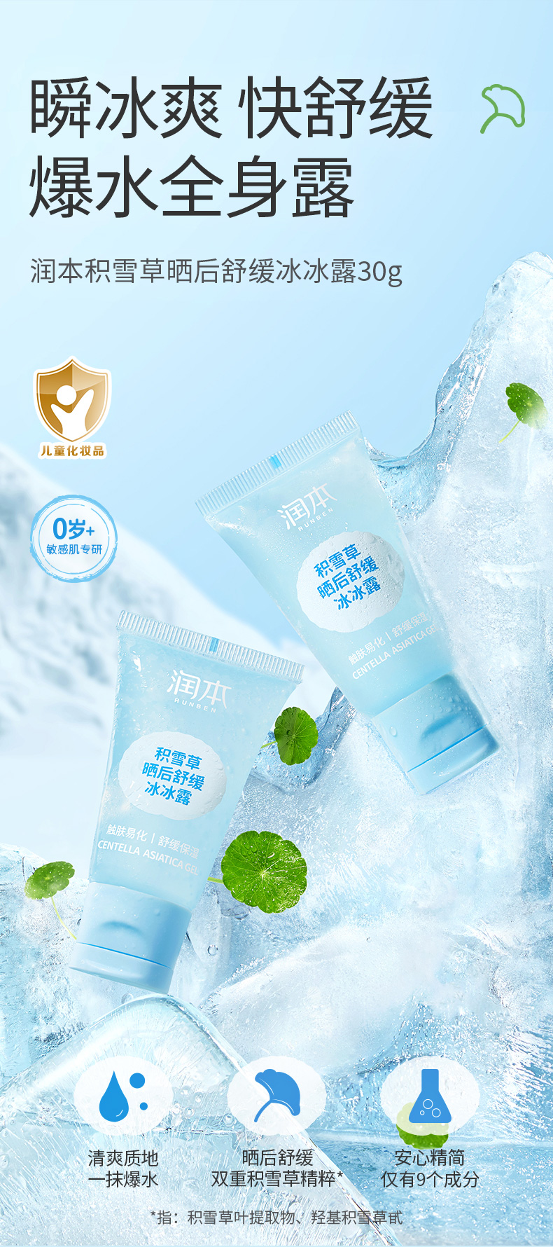 润本积雪草晒后舒缓冰冰露30g
