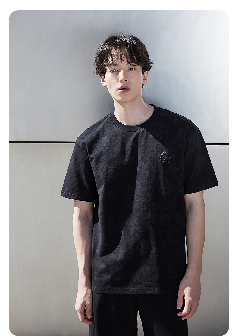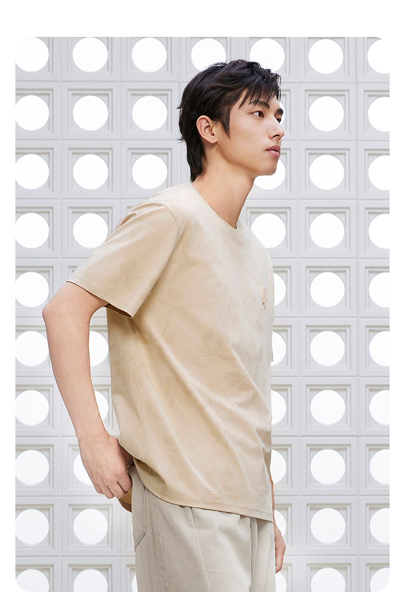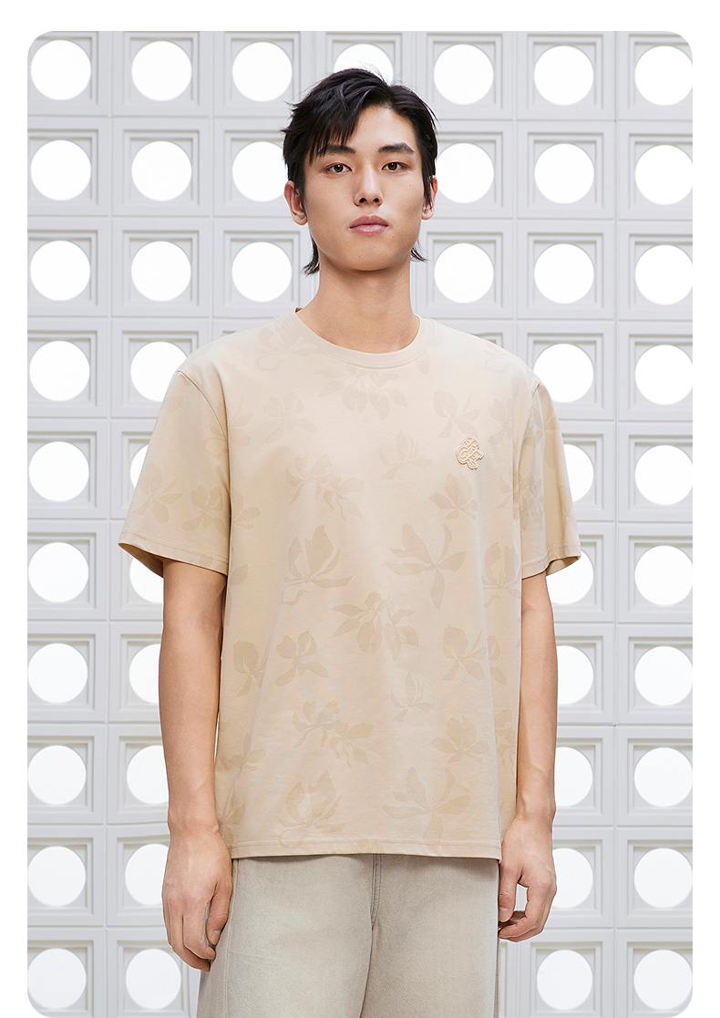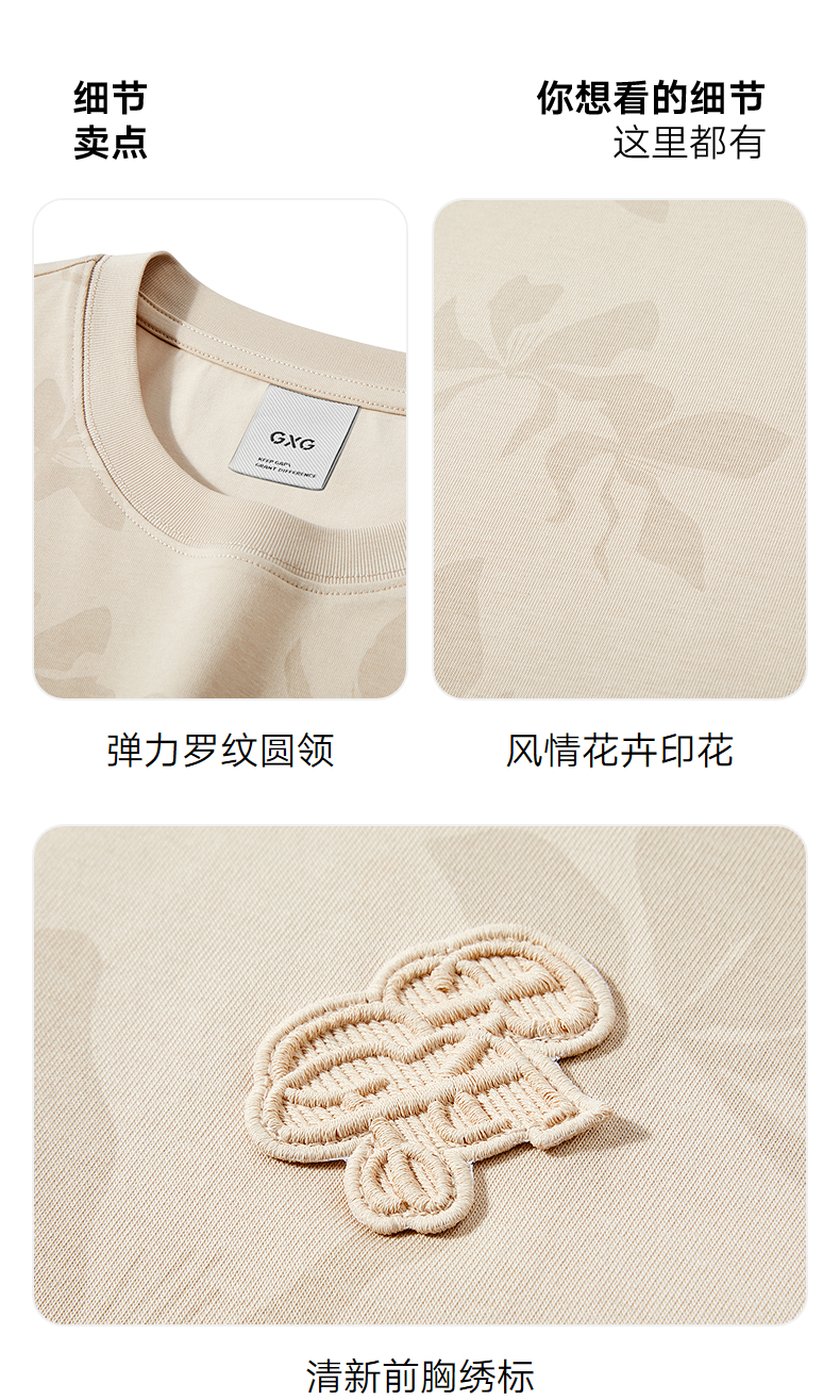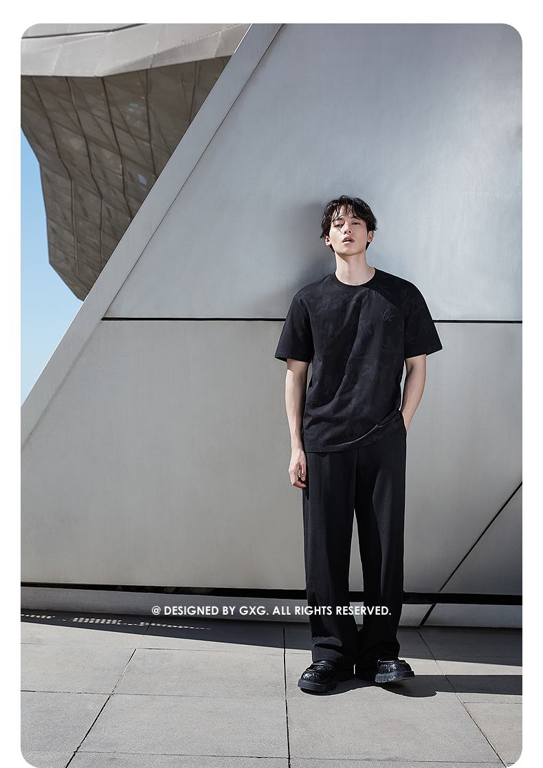 GXG男装 圆领T恤双色暗纹满印上衣凉感短袖针织 2025夏季新品