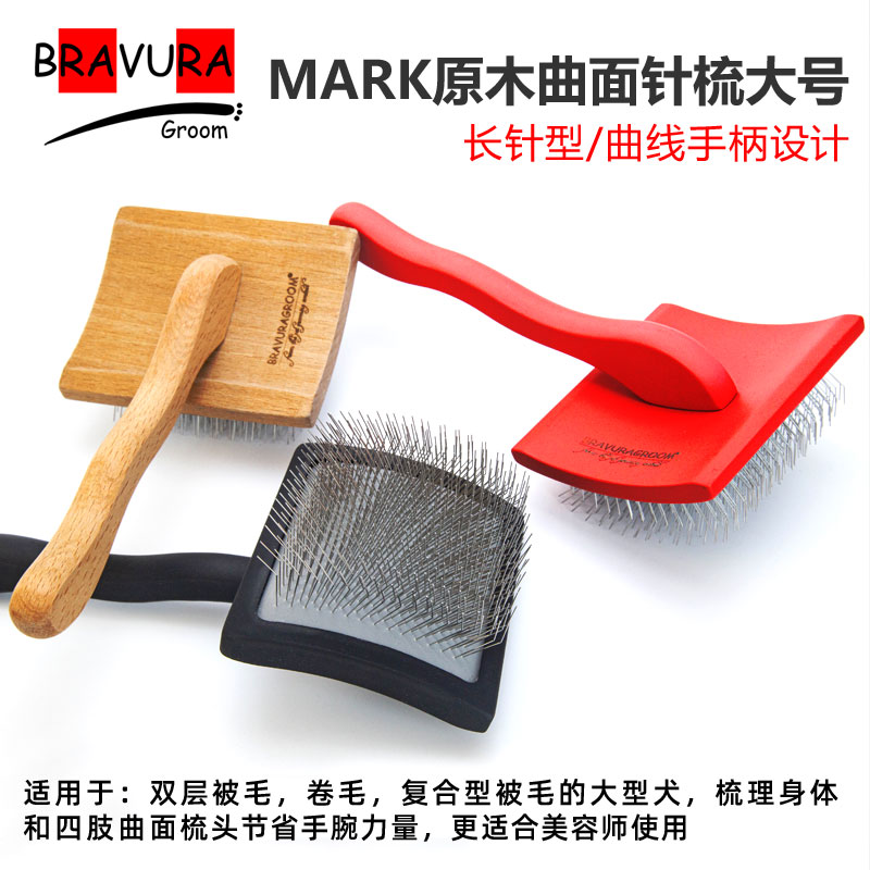 宠物曲面针梳 大G原木 大号宠物美容针梳 多色可选 意大利BRAVURAGROOM