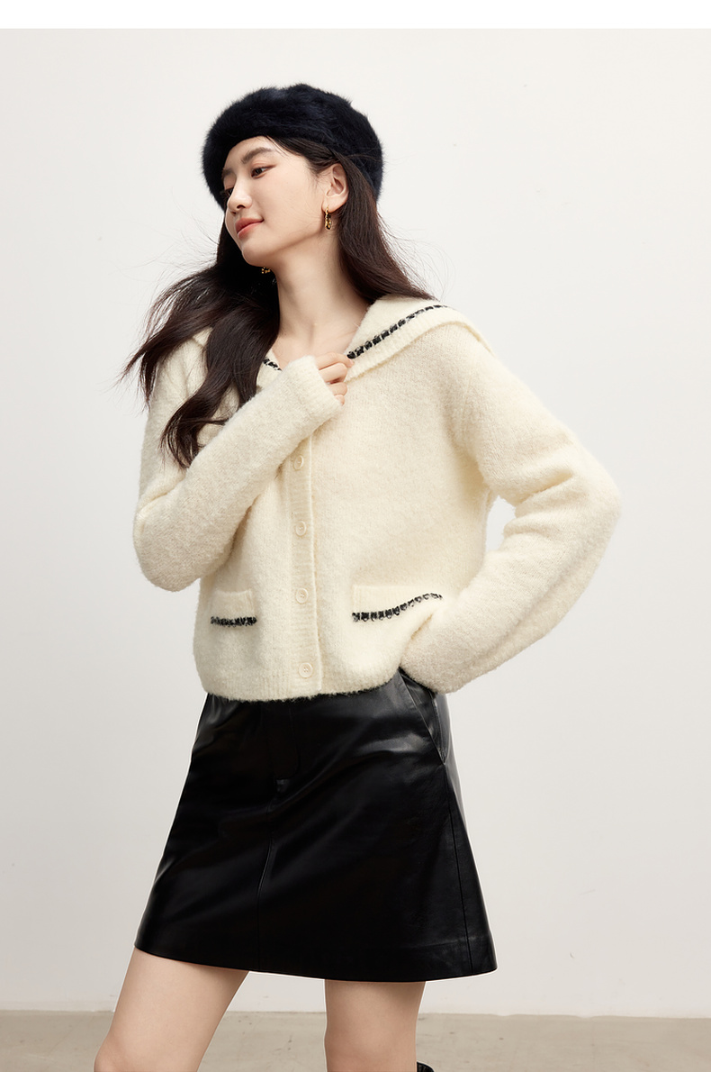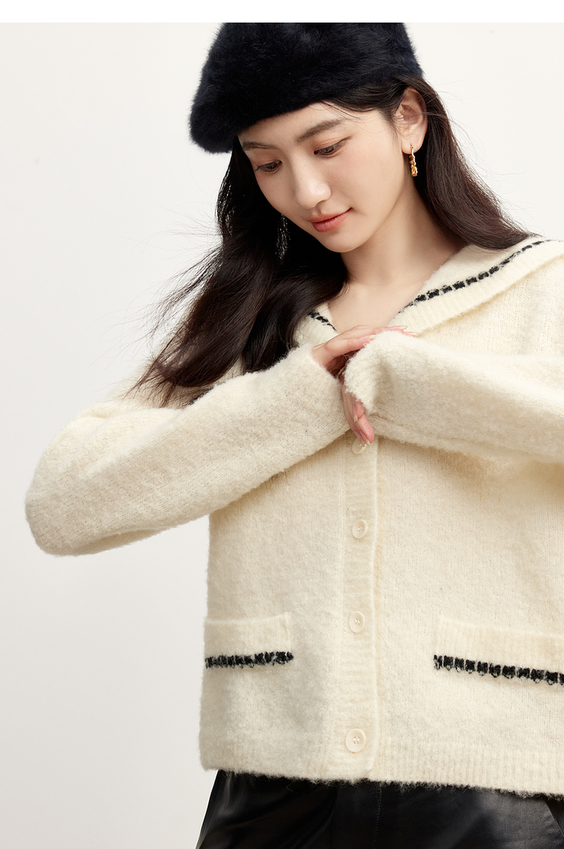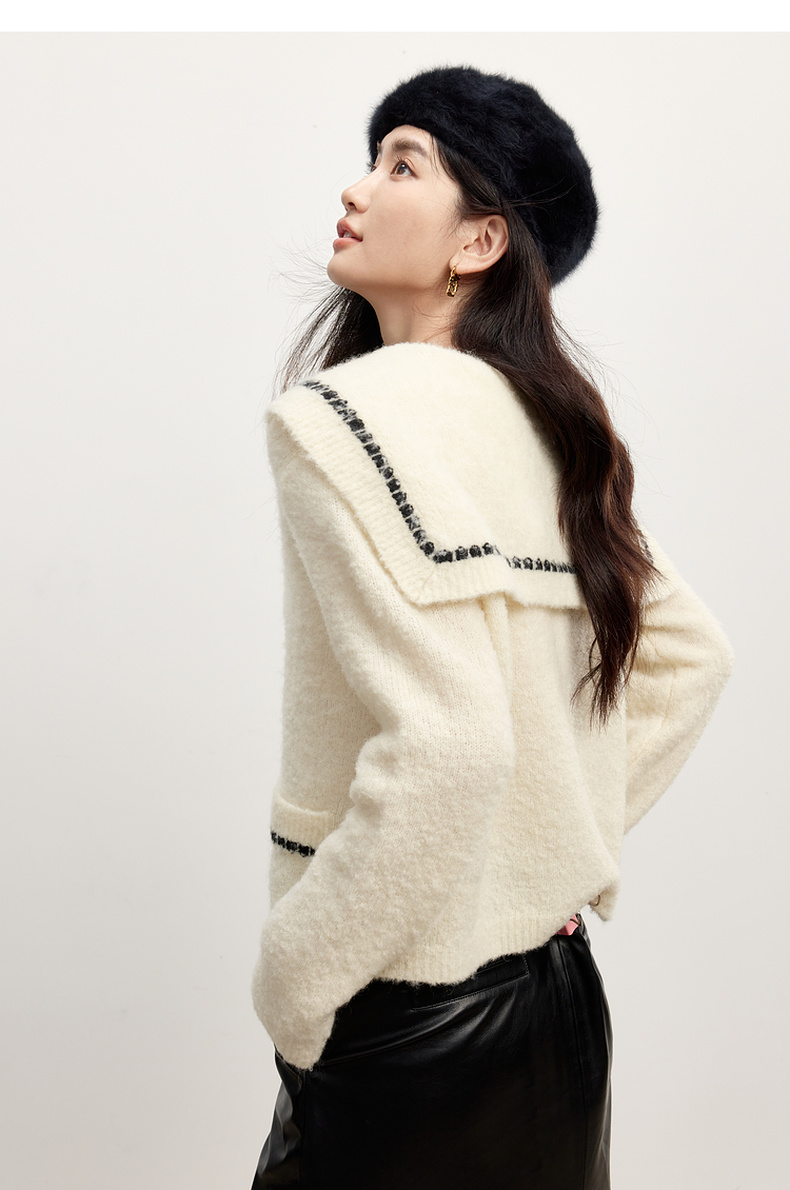 【严选】【圈圈羊毛】伊芙丽复古学院海军领针织开衫2024冬季新款毛衣外套1FA935201
