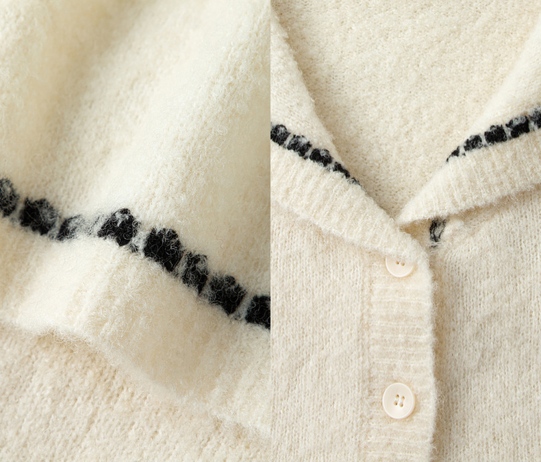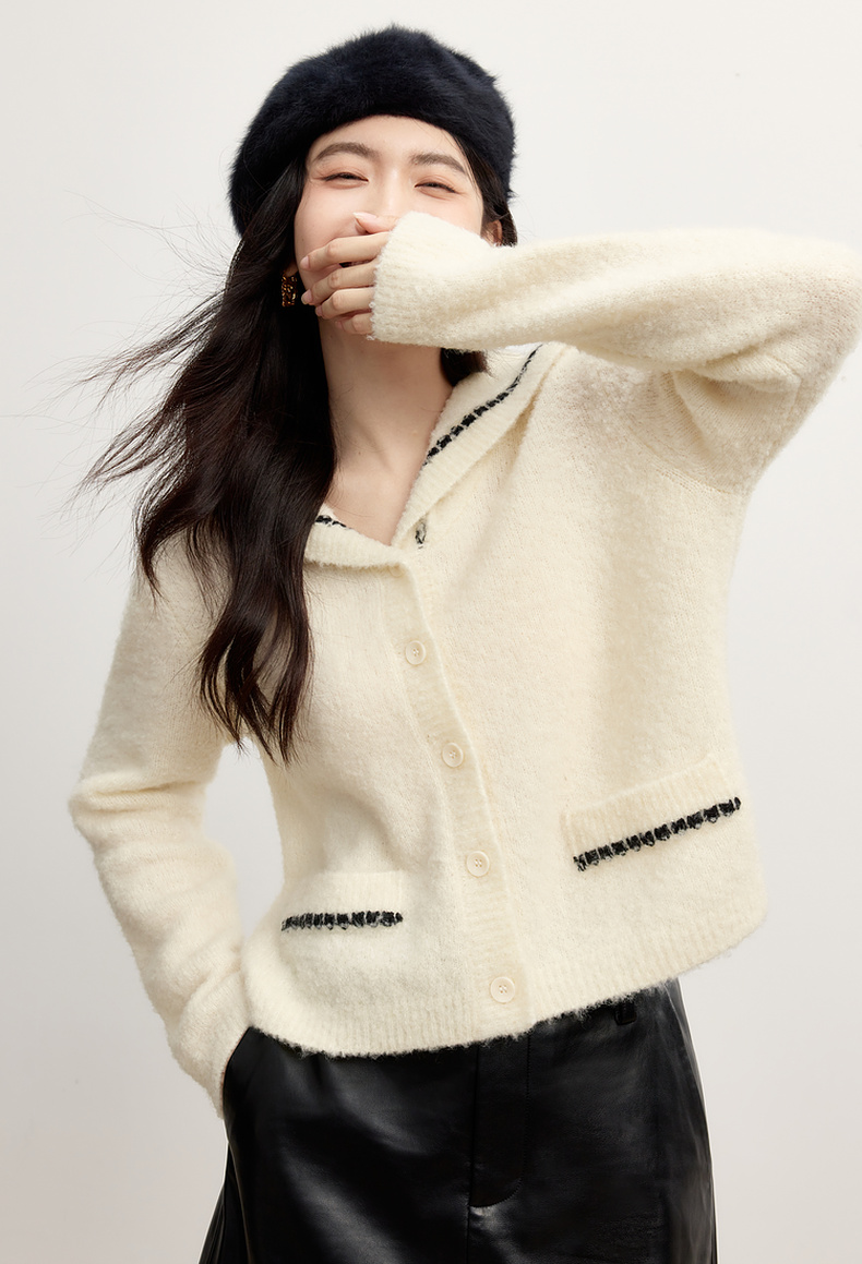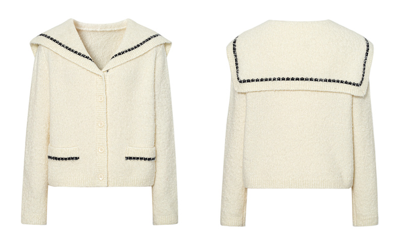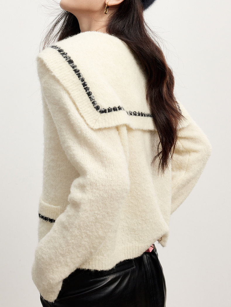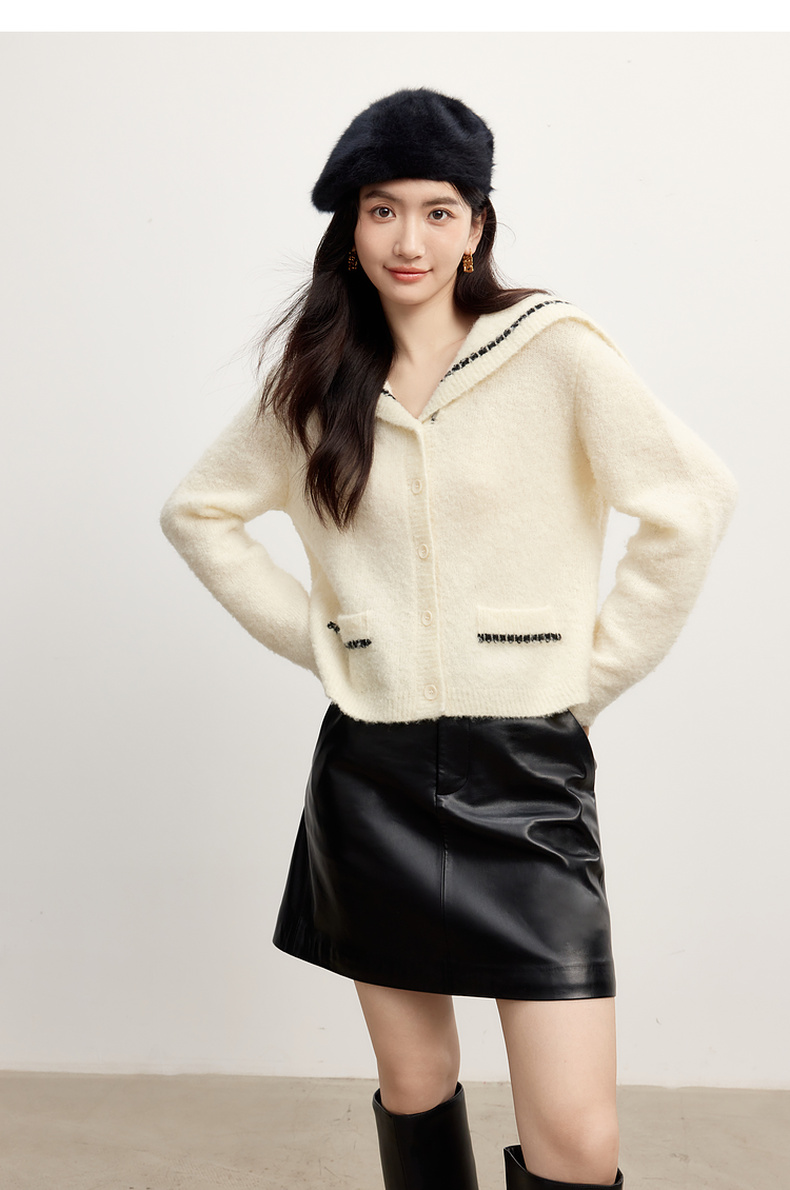 【严选】【圈圈羊毛】伊芙丽复古学院海军领针织开衫2024冬季新款毛衣外套1FA935201