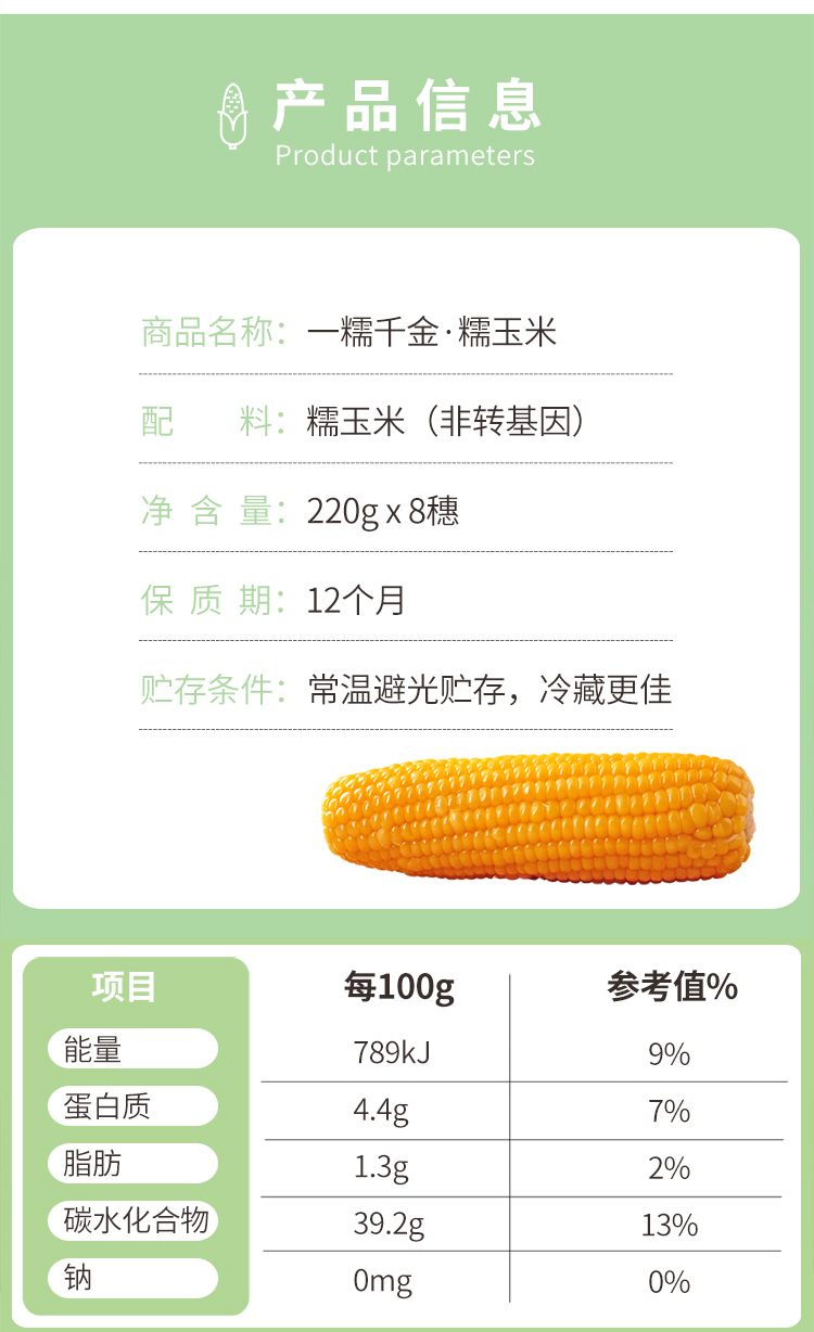 甄食在 一糯千金 黄糯玉米 礼盒装 220g*8穗